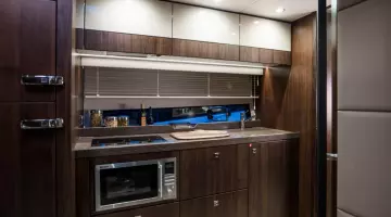Of course, the Targa 50 OPEN is built for speed and all-out thrills. The exterior looks are a giveaway especially with its head-turning anthracite roof. On the inside, even more luxury awaits. Beautiful Italian leather. Carefully considered high and low-level lighting to cabins. And in the master cabin, a stunning feature headboard. It’s these understated, and not so understated touches, that set the Targa 50 OPEN apart.