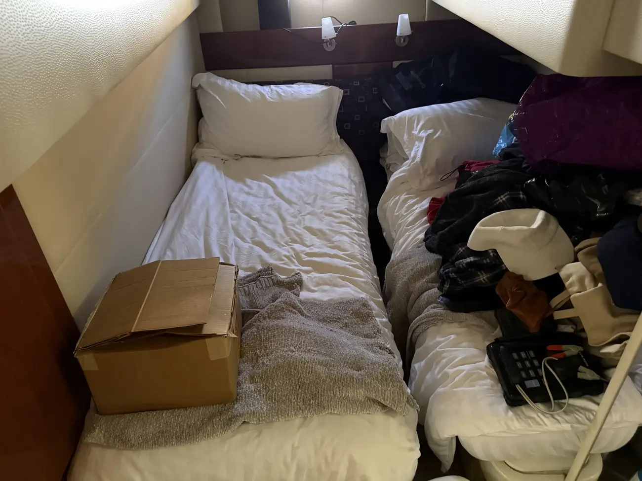 Aft twin berth cabin with separate heads and basin.
