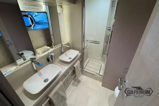The helm stations – both on the main deck and flybridge – are beautifully designed with modern instrumentation, intuitive controls, and excellent ergonomics. This is a yacht that feels as rewarding to pilot as it is to spend time on.
