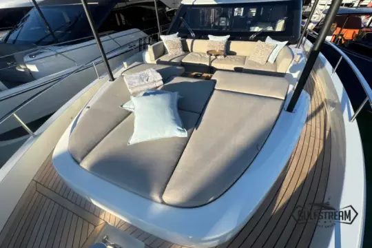 The flybridge is a real highlight of the Sessantadue 62. With multiple zones for lounging, dining, or simply enjoying the view from the upper helm, it captures the true spirit of flybridge cruising. A spacious foredeck with sunpads and seating provides yet another place to relax, meaning guests can always find their perfect spot on board.