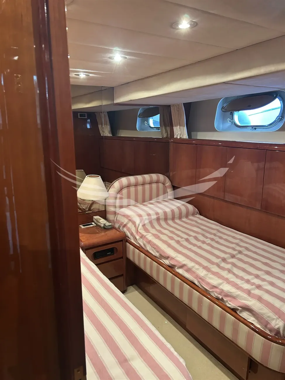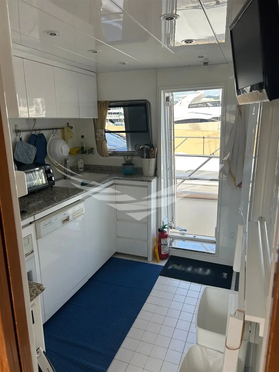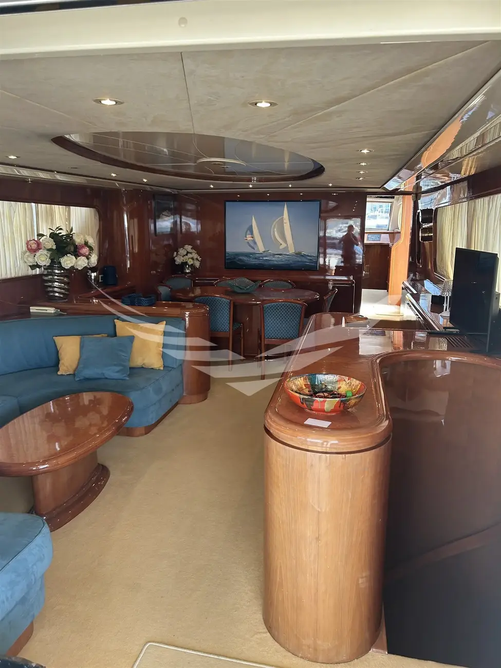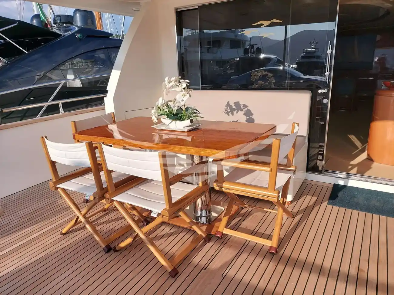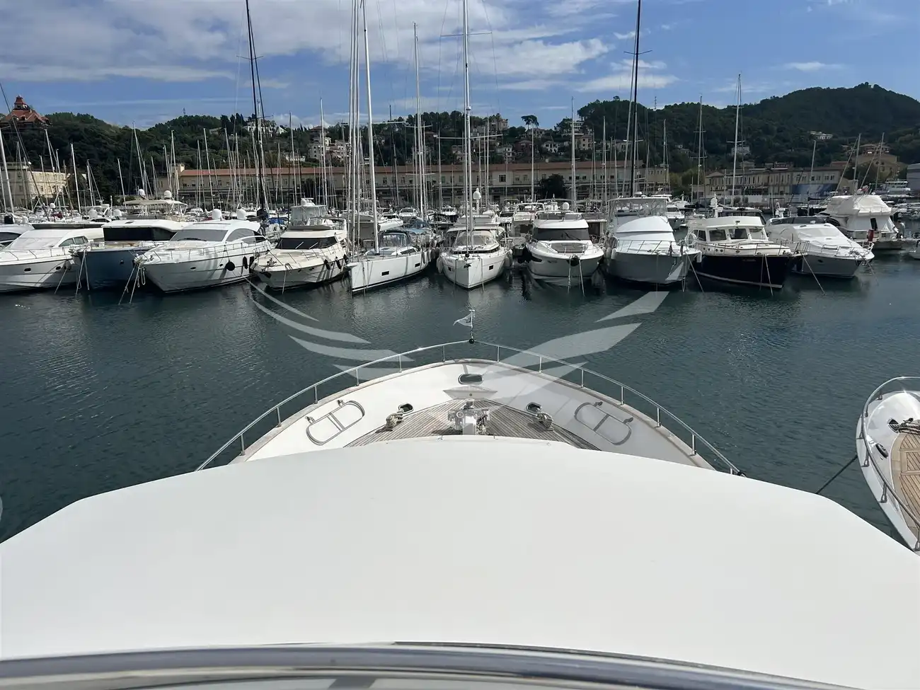 Jobs performed: Cockpit table replaced in 2025 Seat replaced in 2025 Fire prevention system overhaul 2024 Carpet completely renovated in salome in 2024 Cushions completely renovated in the saloon in 2024 Replaced fly sun awning in 2024 Teak platform + stern steps renovated in 2023 WC Review 2023 All bilge pumps replaced and new clarinet nek 2023 inserted 2 generator sets overhauled in 2022 2 refrigerators added in the kitchen in 2022 Engine exchangers replaced in 2021 Navigation equipment: 2 Compass ((1 in plancia + 1 sul fly)), Depth Sounder (Raymarine), 2 GPS (Lorenz a colori (1 in plancia + 1 sul fly)), Autopilot (Navicontrol), Radar (Furuno 72 mg), 2 VHF Radio (1 in plancia + 1 sul Fly). Staging and technical: cockpit table, Tender (AB motore Honda 20Hp). Domestic Facilities onboard: Watermaker (100/h). Entertainment: Satellite TV antenna (Simrad), TV (panasonic 42" nuova 2024). Kitchen and appliances: 2 Refrigerator (2022). Upholstery: Sunshade (sul fly).