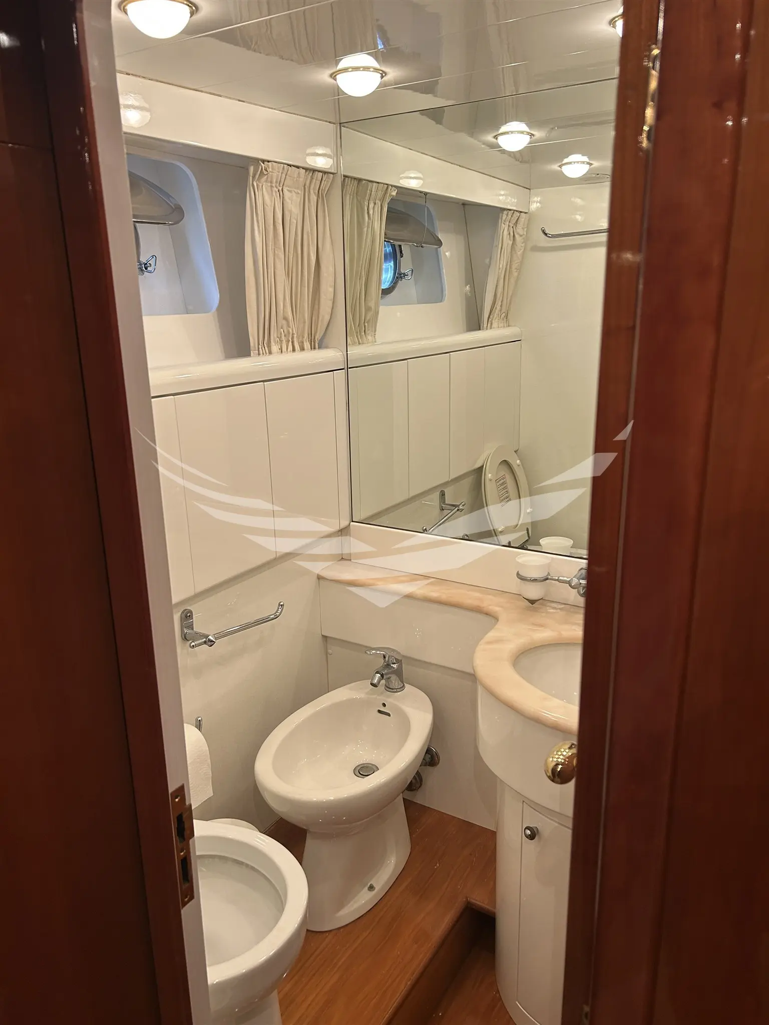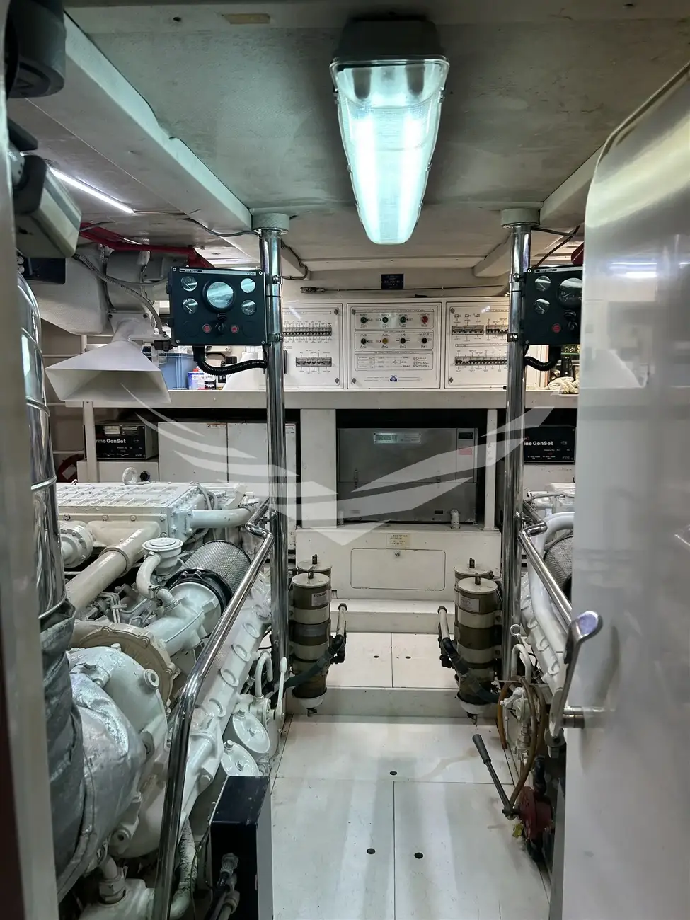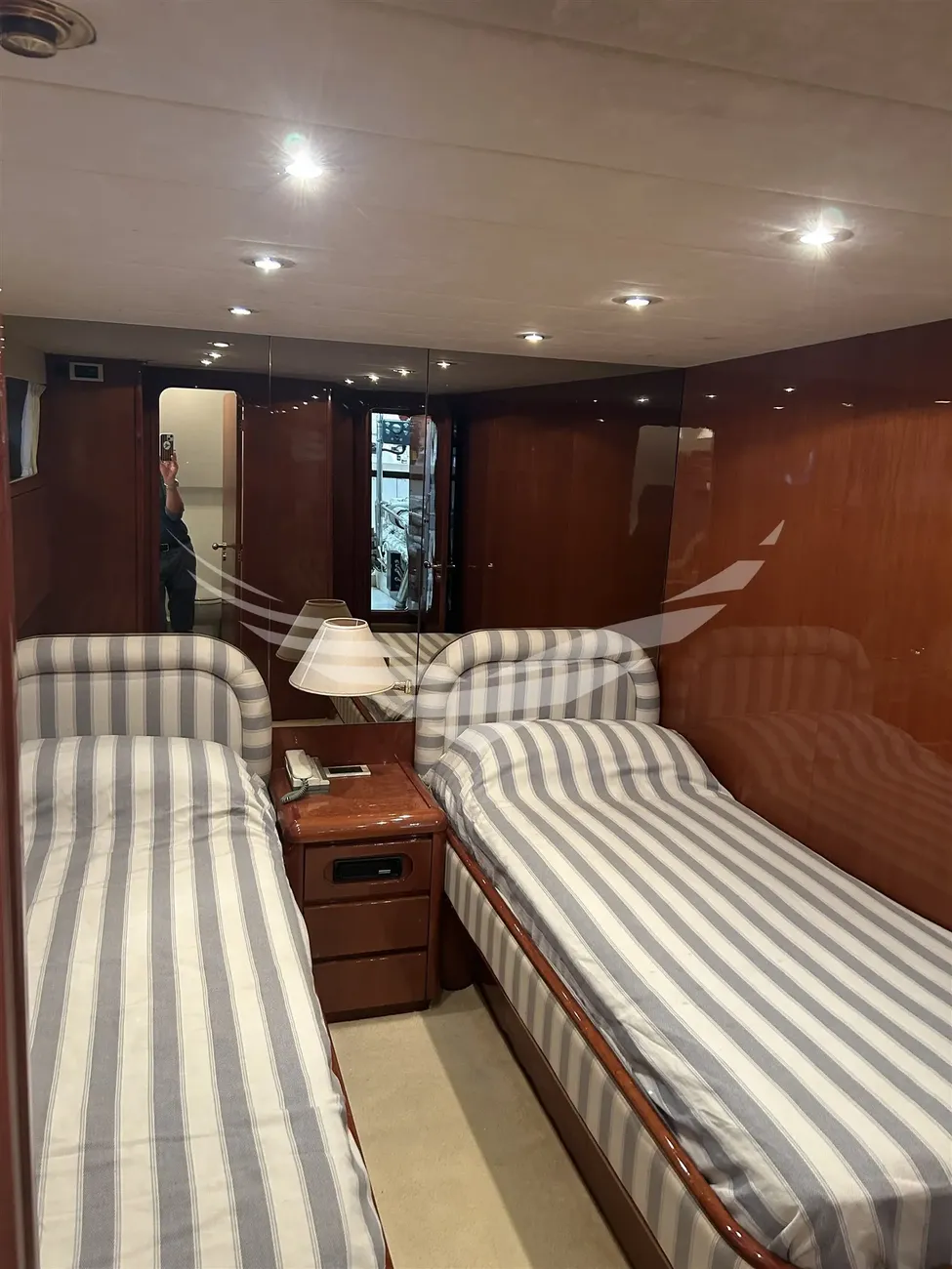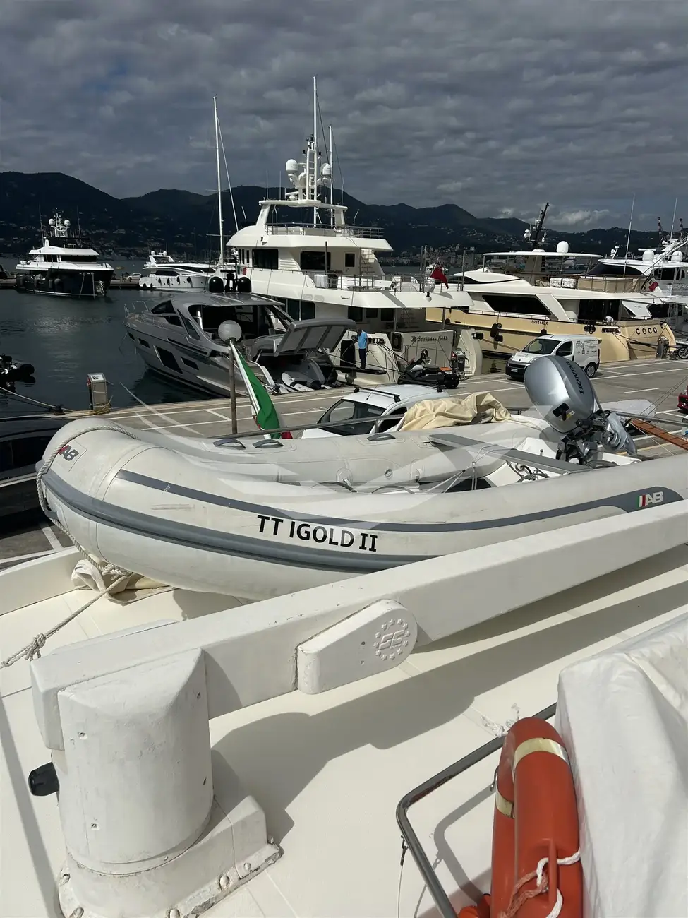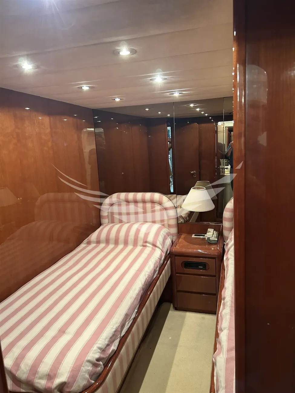 Jobs performed: Cockpit table replaced in 2025 Seat replaced in 2025 Fire prevention system overhaul 2024 Carpet completely renovated in salome in 2024 Cushions completely renovated in the saloon in 2024 Replaced fly sun awning in 2024 Teak platform + stern steps renovated in 2023 WC Review 2023 All bilge pumps replaced and new clarinet nek 2023 inserted 2 generator sets overhauled in 2022 2 refrigerators added in the kitchen in 2022 Engine exchangers replaced in 2021 Navigation equipment: 2 Compass ((1 in plancia + 1 sul fly)), Depth Sounder (Raymarine), 2 GPS (Lorenz a colori (1 in plancia + 1 sul fly)), Autopilot (Navicontrol), Radar (Furuno 72 mg), 2 VHF Radio (1 in plancia + 1 sul Fly). Staging and technical: cockpit table, Tender (AB motore Honda 20Hp). Domestic Facilities onboard: Watermaker (100/h). Entertainment: Satellite TV antenna (Simrad), TV (panasonic 42" nuova 2024). Kitchen and appliances: 2 Refrigerator (2022). Upholstery: Sunshade (sul fly).