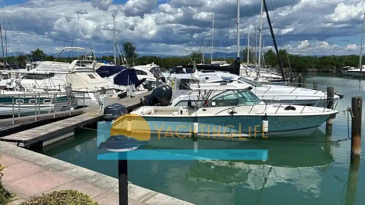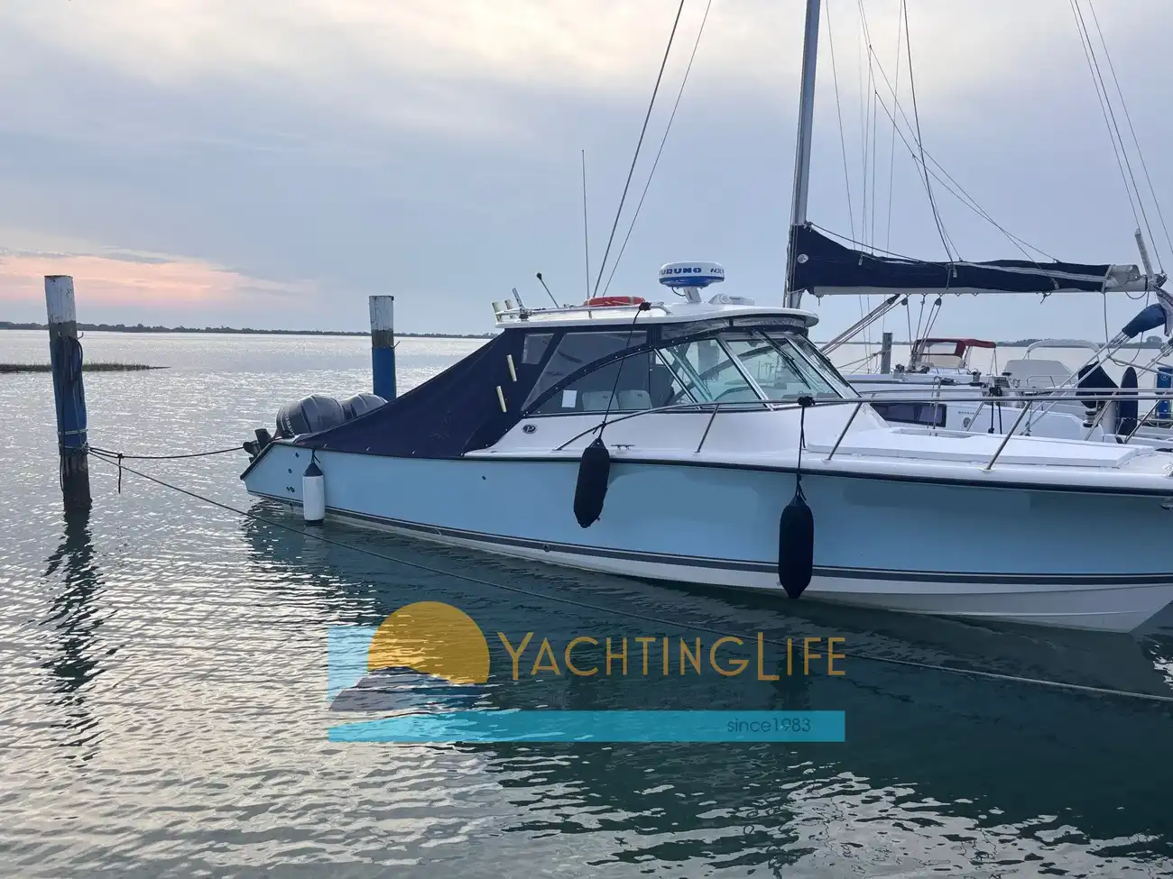 Boat that has undergone a major refit of both electrical, electronic and on-board technology systems - Engines with extraordinary maintenance carried out 2024 (belts, belt tensioners, water pumps, thermostats, impellers, filters, anodes and trim pistons, as well as general overhaul of the cooling system) - Attractive price + agency fees of 5% + VAT - Navigation equipment: Radar Antenna (2022), DSC vhf (Standard Horizon GX1850 GPS/E), Depth Sounder (Furuno B265LH), Autopilot (Raymarine), Plotter with GPS antenna (Furuno TZT3 16” MFD), Radar (Furuno DRS4D-NXT). Staging and technical: Engine Alarm, Water pressure pump, Special Colour (Celeste), Deck Shower, Headlights fixed on the stem, Hydraulic Flaps, Washbasin in the cockpit, Courtesy Lights, Fenders, Platform, Deck Wash Pump, Entry door, Shorepower connector, Electric Windlass (Lewmar Pro Series, swimming ladder, Horn, T-Top. Domestic Facilities onboard: Warm Water System, Waste Water Plant, Electric Toilet. Security equipment: 6 Life Jackets, Signal flares, Radar reflector, Lifebuoy With Safety Rope and Light Buoy, Liferaft (8p da revisionare). Entertainment: 6 Speakers (JL M3-770), 2 Home Theater (Ampli JL M400/4), Hi-Fi (JL MM100). Fishing accessories: Outriggers, Fishing Rod Holder, Baitwell, Fishbox. Kitchen and appliances: Galley, Deck Refrigerator. Upholstery: Cockpit Cover, Cushions.