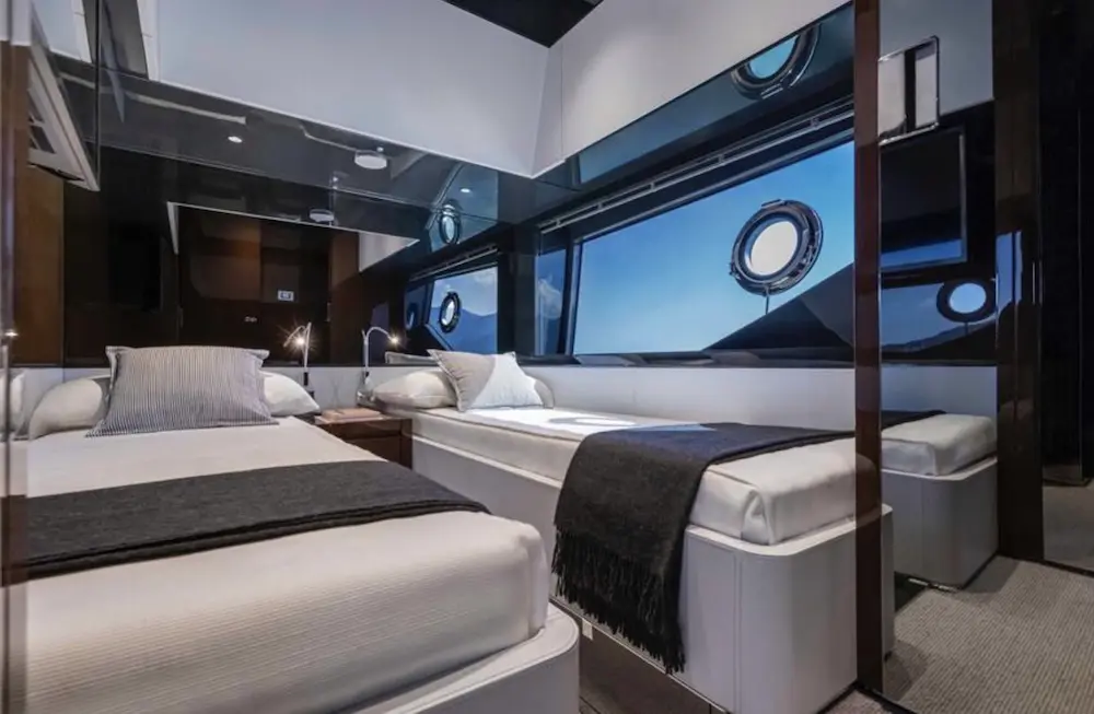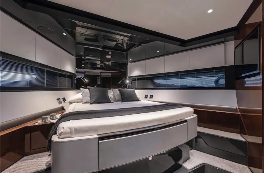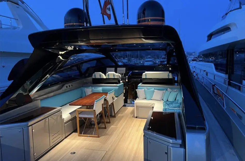 The Riva 68’ Diable is a luxury motor yacht combining high performance and refined style. At 20.67 meters long with a 5.29-meter beam, it offers spacious interiors and exteriors. Powered by twin MAN 1650HP engines, it reaches speeds up to 40 knots. Accommodating 16 guests, it features three elegant cabins with chocolate wengé wood and a crew cabin. Amenities include sunbeds, a swim ladder, Seakeeper NG9 stabilizer, Garmin navigation, air conditioning, and entertainment systems. With a 3,800-liter fuel tank and 600-liter water tank, it’s ideal for extended voyages. The yacht is currently visible in Sanremo, Italy.ELECTRONICAL EQUIPMENT Generator Onan Inverter AIS Autopilot Cockpit Speakers Compass Computer Depthsounder FlatScreenTV GPS Plotter Radar TVSet VHF Wi-Fi EXTERIOR Cockpit Cushions Cockpit Table Gangway GyroscopicStabilizer Hydraulic SwimStep TeakCockpit TeakSidedecks INTERIOR Air Conditioning Battery Charger DeepFreezer Dishwasher Heating Hot Water Microwave Oven Oven Refrigerator Seakeeper Stern Thruster WashingMachine ADDITIONAL Touch Screen UnderwaterLights Cockpit Cover