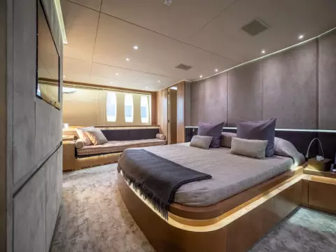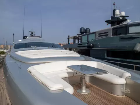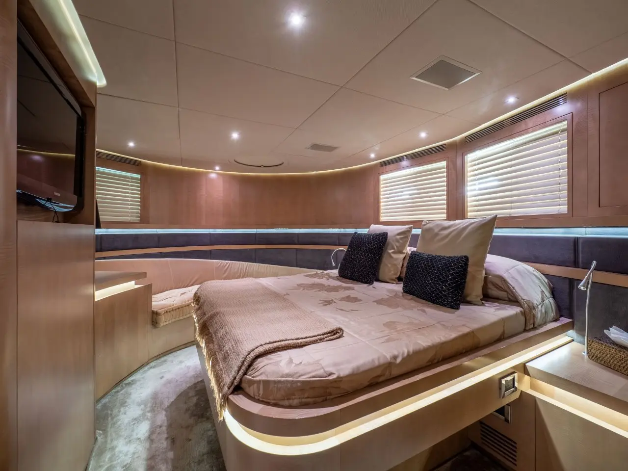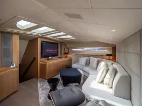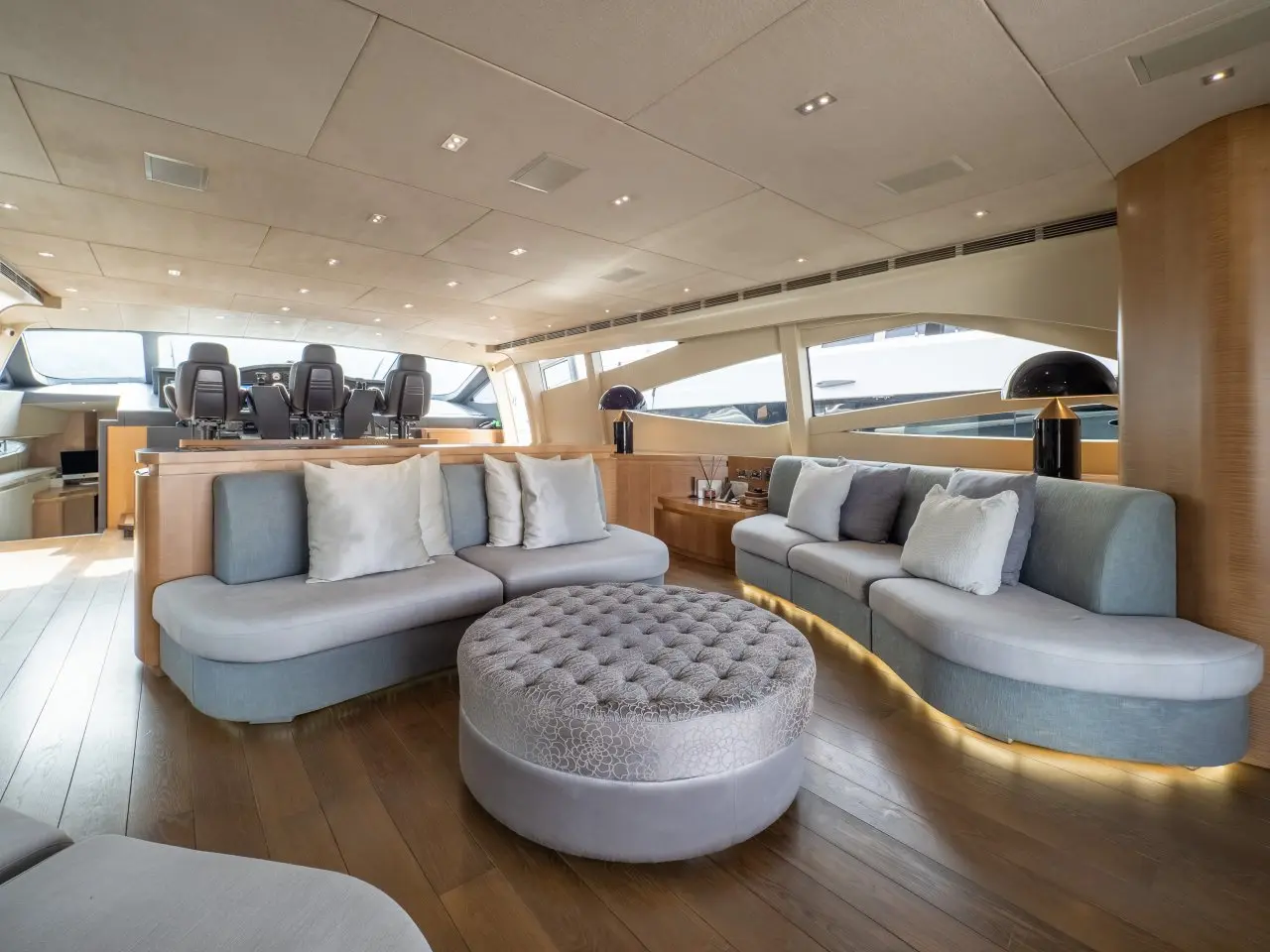 This masterpiece seamlessly blends cutting-edge technology with opulent design, promising an unparalleled experience on the open seas. With its striking profile and innovative features, the Pershing 115 has become the epitome of sophistication in the yachting world.KaMeWa 71SII Water Jets (no. 2) 300 l/hr Water Maker Hamann “Supermini” treatment system Open Array Radar Full Snap-On tool kit and work bench Bauer Junior dive compressor LED Dimmer lights 105Kg Anchor with safety and joint (no. 2) Galvanized Anchor chain (no. 1x 140m + no. 1x 100m) VHF Radio & Antenna (no.2) 2500W Capstan with Foot controls (no. 2) 4000W Fore Windlass w/waterproof control (no. 2) Fore garage Hydraulic hatch and telescopic crane (400kg) Aft garage w/Hydraulic hatch, slide and telescopic crane (400kg) Tender Cradle and lifting system Electric /Manual Pantograph side doors (no. 2) Fibreoptic lighting under the bathing platform (no. 8) Tender Cradle and lifting system Autopilot Built-in alarm management and electric parameter system Chart Plotter/Radar (no.2) Cordless intercom system Electronic digital LCD engine control panel (no.2) Engine and Navigation control instruments - Depth / Speed indicator (no.2) - High speed compass - Rev. counter (no.2) Bow thruster control Gyro Compass and repeater KaMeWa Waterjet control units (no.2) Pilot and co-pilot seat with electric motion (no.3) Portable Radio intercom (no.4) Satcom mini-M Satellite Communication System SSB Radio Water Jet control instruments - Deflector angle indicator (no.2) - Steering angle indicator (no.2) Centralised extractor fan for ships heads/bathrooms Fixed Panasonic Phone system & exchange Main A/C unit for crew quarters Main A/C unit for upper salon and guest cabins Waterproof camcorder interfaced with Onyx in helm and crew dinette screens (no.3) Satellite TV & Decoders to all cabins TV’s in all cabins 50” HD SMART TV in saloon plus 7:1 surround sound 50” HD TV in playroom plus 5:1 surround sound Lutron scenic lighting AMX controlled system plus Prontos and iPod Hard drive Imerge music system fully integrated Ducati Monster 1100S motorbike Sachs Madass 125cc Motorbike Tender (model and LOA) and engine (model and power) Williamshp) Supercharged Custom Tender Jet ski / Water craft Seadoo Wake Pro 215hp Yamaha Superjet Skis and wakeboard DISCLAIMER: The Company offers the details of this vessel in good faith but cannot guarantee or warrant the accuracy of this information nor warrant the condition of the vessel. A buyer should instruct his agents, or his surveyors, to investigate such details as the buyer desires validated. This vessel is offered subject to prior sale, price change, or withdrawal without notice. EXENCIÓN DE RESPONSABILIDADES: La empresa ofrece los detalles de esta embarcación de buena fe, pero no puede garantizar la precisión de esta información ni garantizar la condición de la embarcación. Un comprador debe instruir a sus agentes, o a perito, para que investiguen los detalles que el comprador desee validar. Este barco se ofrece sujeto a estar disponible, cambio de precio o retiro sin previo aviso.