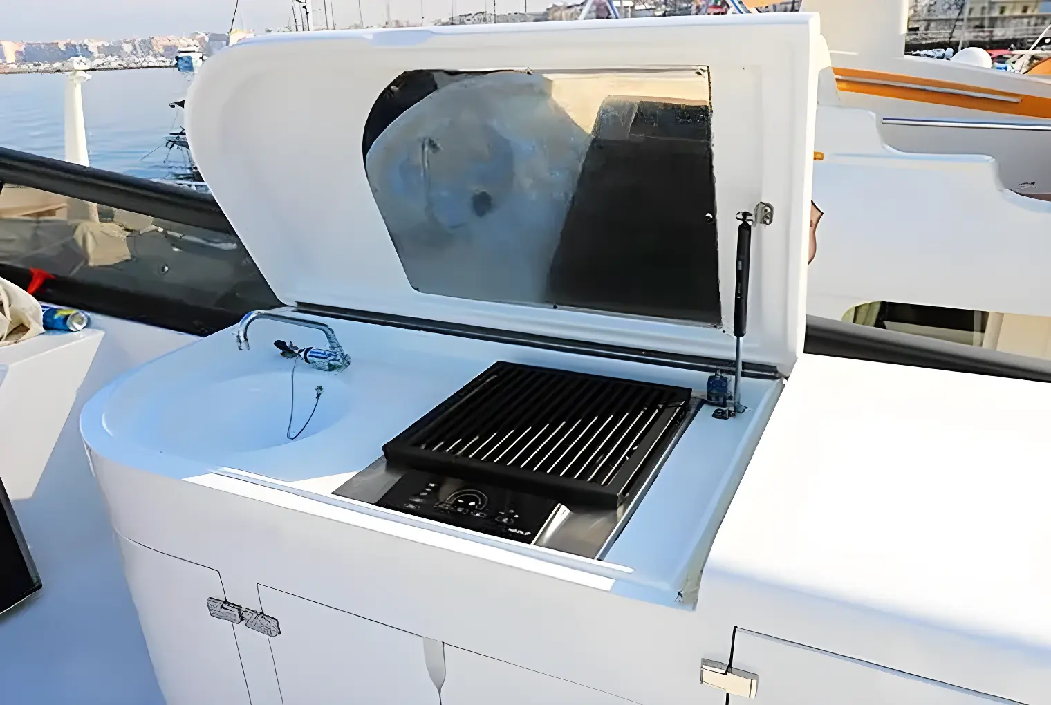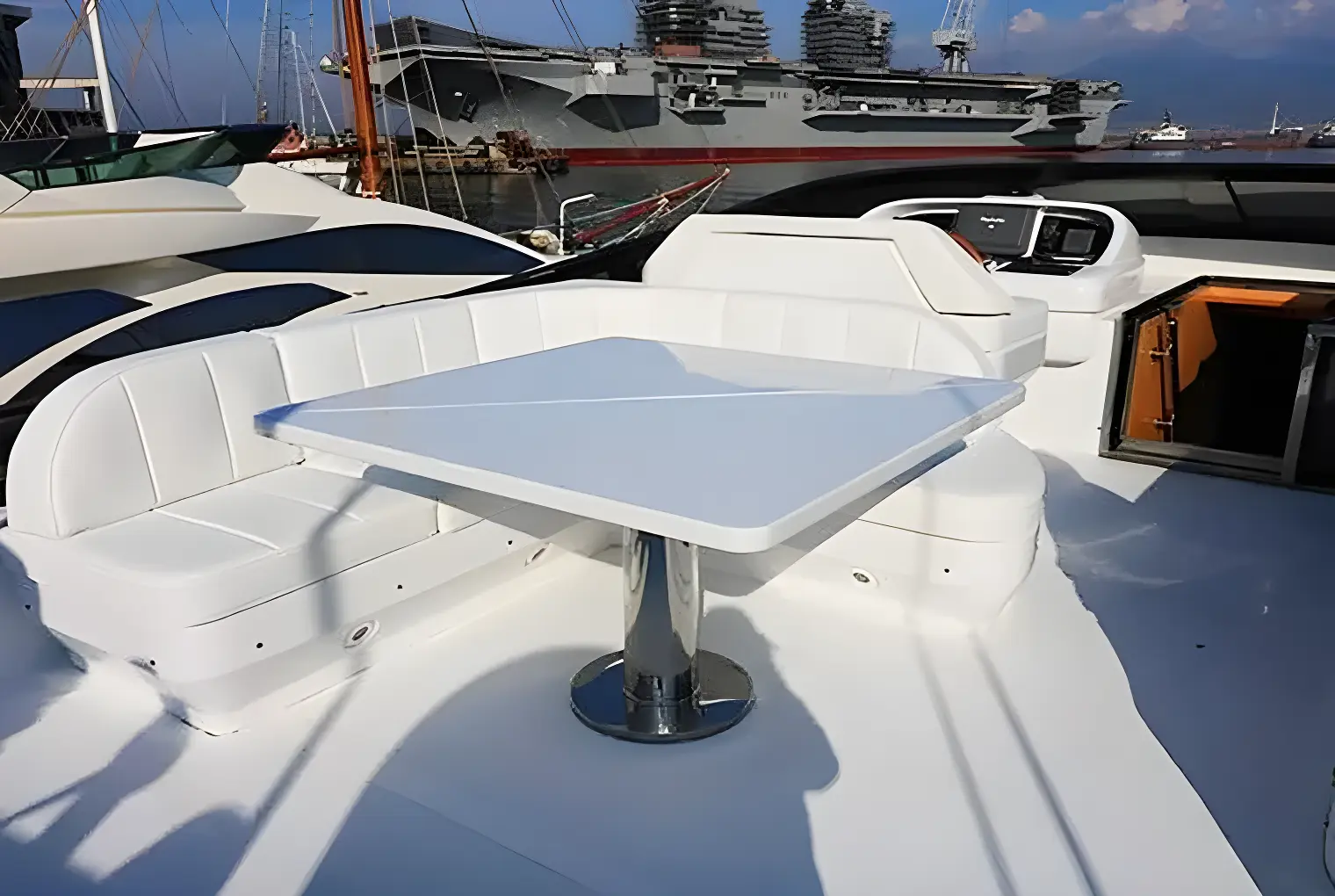 The large windows, the hallmark of Maiora yachts, give the interior great brightness and the living room, spacious and bright is the business card of the living area. Available list of works carried out from 2017 to today.