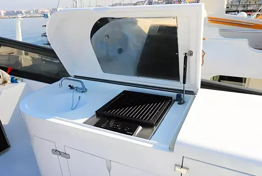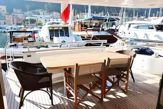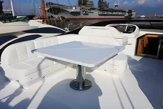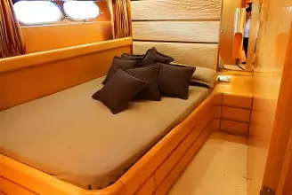 Total polish of the hull in 2017 and 2019, sanding of the external teak in 2017, new master cabin headboard and sofa in 2017