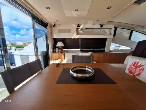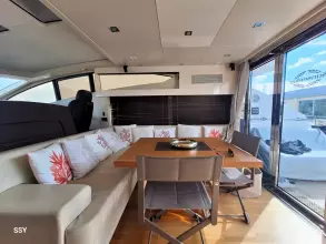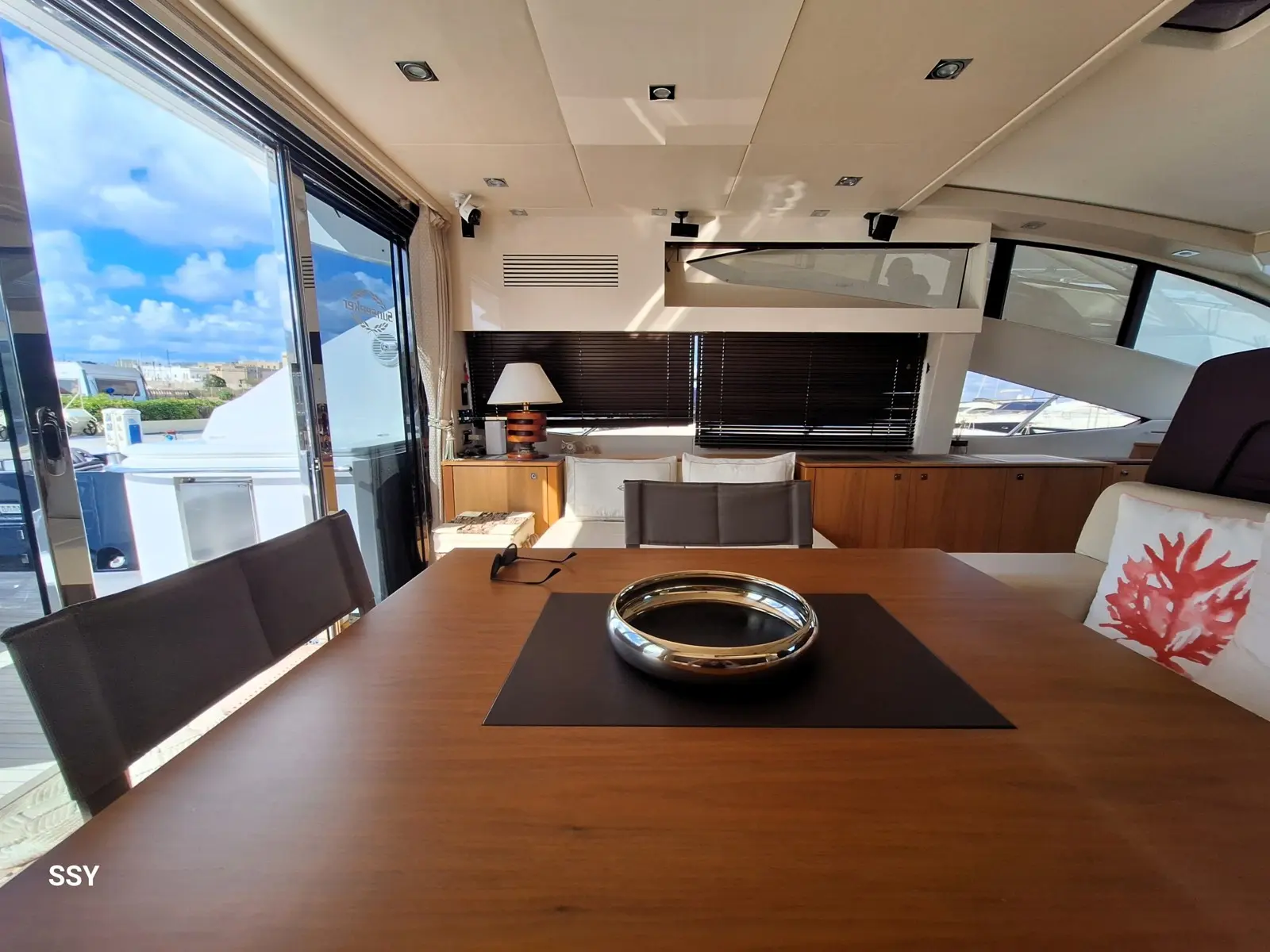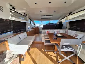 The spacious cockpit is intelligently laid out to offer a generous outdoor living area, featuring comfortable seating, a central dining table and a fully equipped wet bar with sink, electric BBQ, refrigerator and icemaker, as well as an electrically operated retractable bimini for optimal shade and comfort.