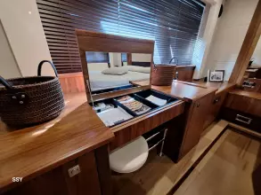 Master Cabin – Midship, Full Beam Elegant and generously proportioned, it features a double bed, ensuite bathroom with separate shower, Sharp TV, Alpine CD/MP3 system, safe, a side settee and a vanity area.
