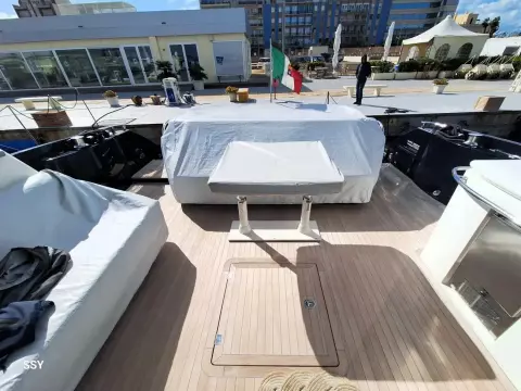 Large sunbathing areas are located both forward and aft, providing ample space for relaxation. At the stern, the yacht is equipped with a Besenzoni Tender Lift with hydraulic bathing platform, along with a dedicated storage hangar for tender or equipment.
