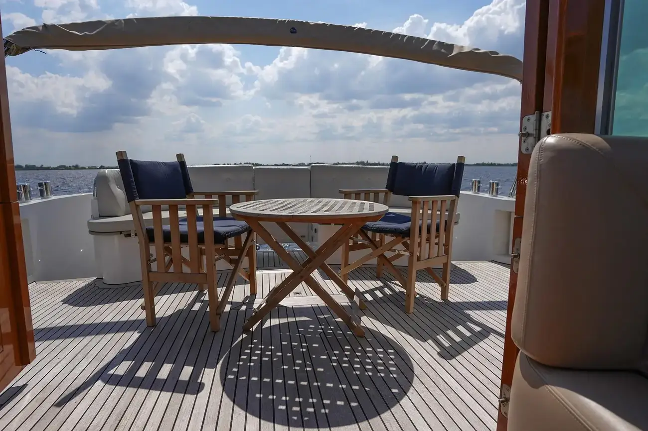 Het schip is verder voorzien van veel comfort zoals fijne banken en stoelen, uitgevoerd in beige leer. Deze meubelen zijn opnieuw gestoffeerd in 2018. De samenstelling van materialen geeft het interieur een ruime- en luxe uitstraling. Door middel van de hydronautica remote control kunnen de motoren en boegschroef gemakkelijk op afstand worden bediend en met gebruik van de midden-bolder, is dit schip eenvoudig solo te manoeuvreren en gemakkelijk af te meren in havens en sluizen. De radarmast is hydraulisch bedienbaar om de doorvaart te vergemakkelijken. In 2024 is er nieuwe antifouling aangebracht.