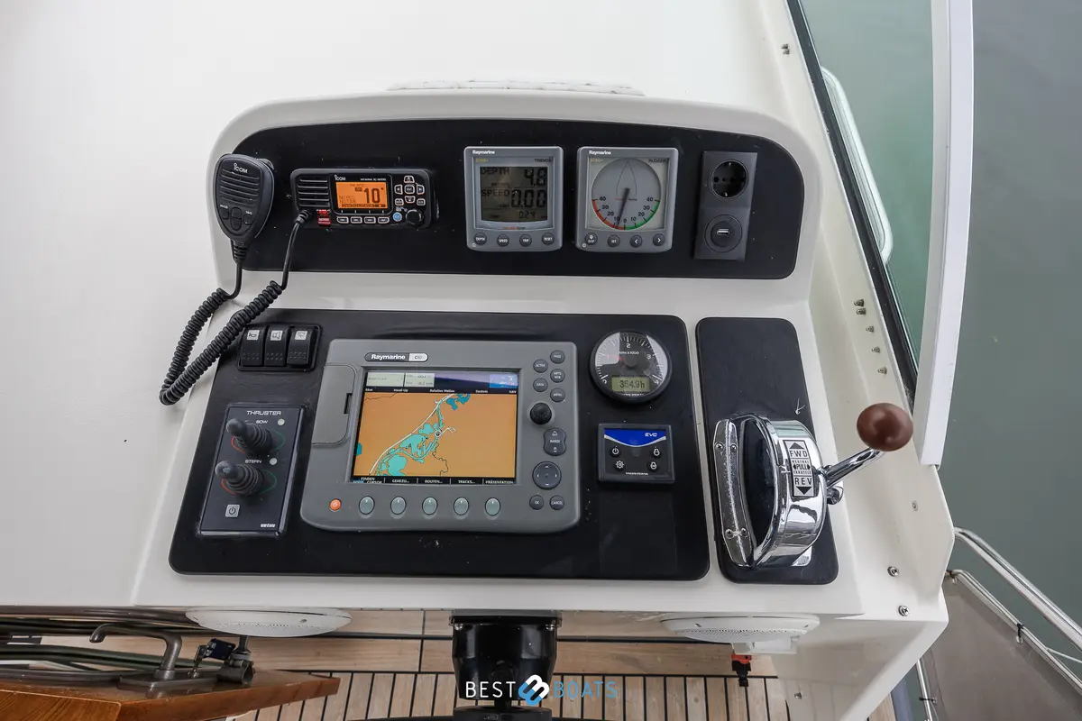Met een Vetus boeg- en hekschroef, Raymarine navigatieapparatuur, elektrische ankerlier en een Mastervolt Mass Combi-systeem is het schip volledig uitgerust voor zorgeloos varen. Verwarming, warm water, walstroom en een complete buiskap met kuiptent maken het comfort aan boord compleet.