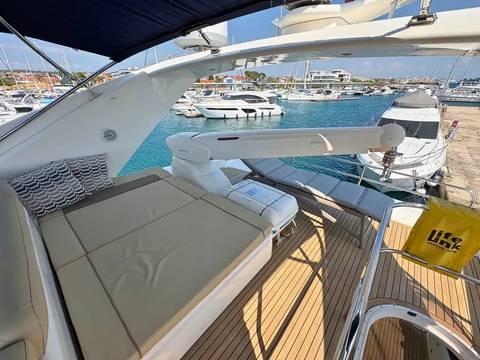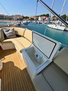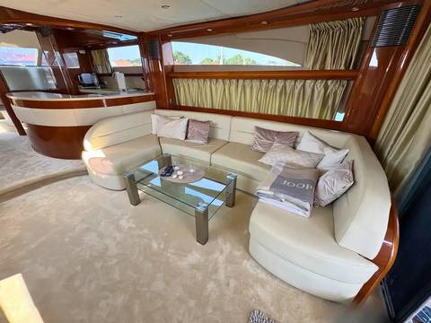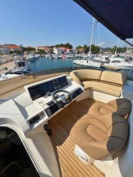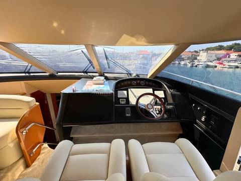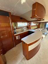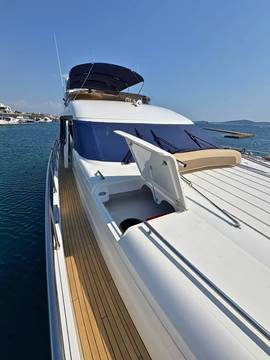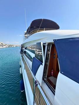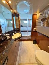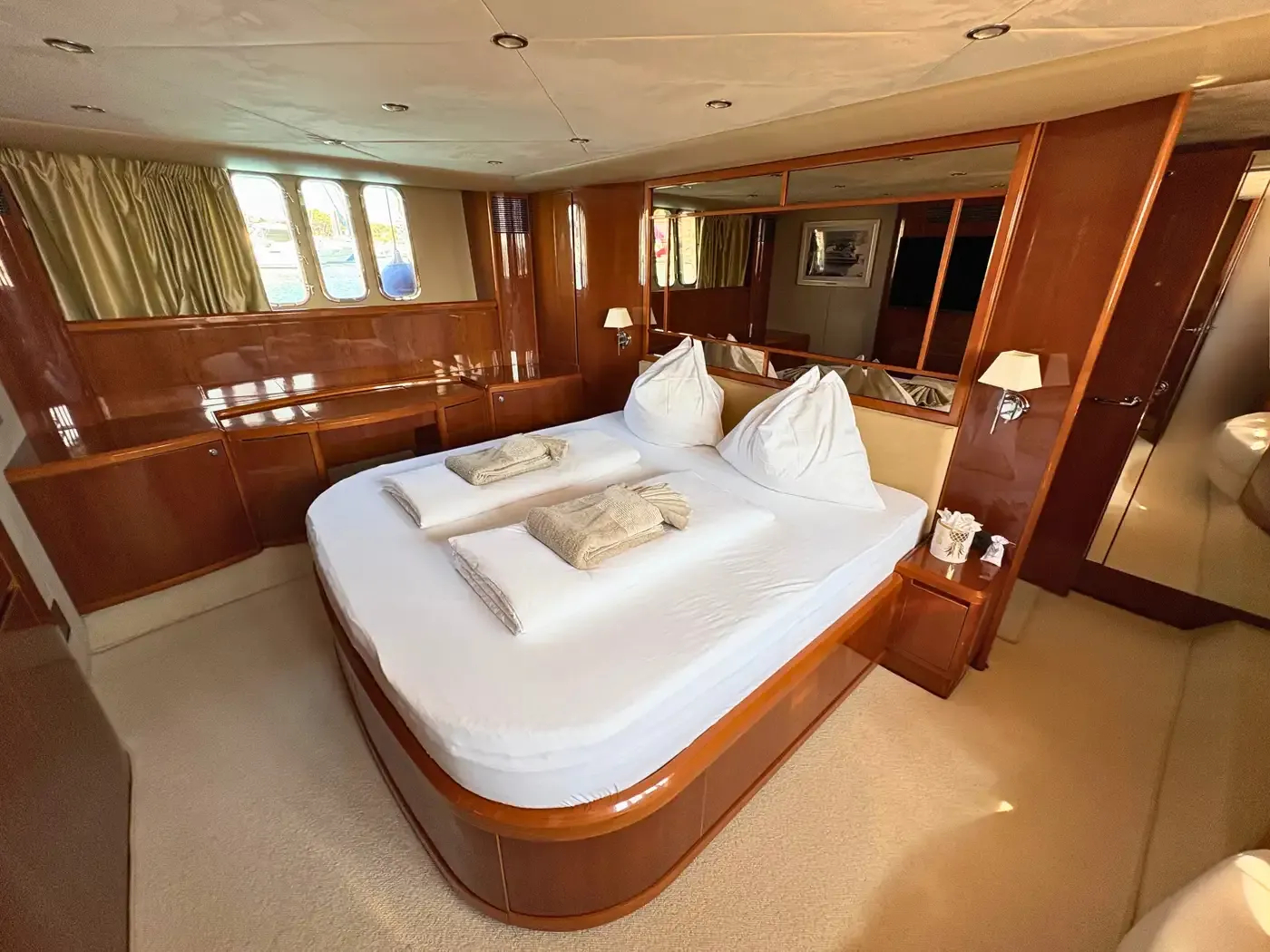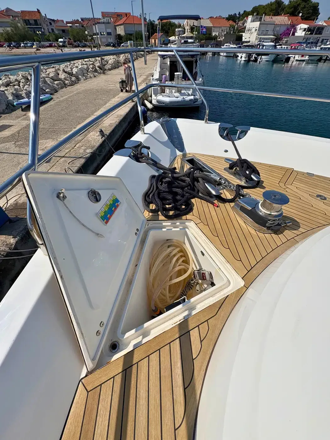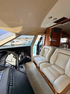 2nd refrigerator, extractor hood, glass ceramic cook top, sink, dishwasher, barbecue, icemaker, washing machine, dryer, toilet electric, separate crew cabine, pantry in crew cabin, owner cabin, guest cabin, bow cabin, salon, steering position inside, steering position on flybridge, bilge alarm, shore supply 220V, main circuit breaker, sat. antenna auto search, harbour cover, cockpit cover, suncushion, pressurized water system, warm water system, bathing platform integrated, teak deck, deck hatch, wetbar, cockpit table, bathing ladder, underwater paint, anchor windlass bow electric, searchlight, boat crane, gangway electric, trim tabs, electric/hydraulic, stern shower warm/could