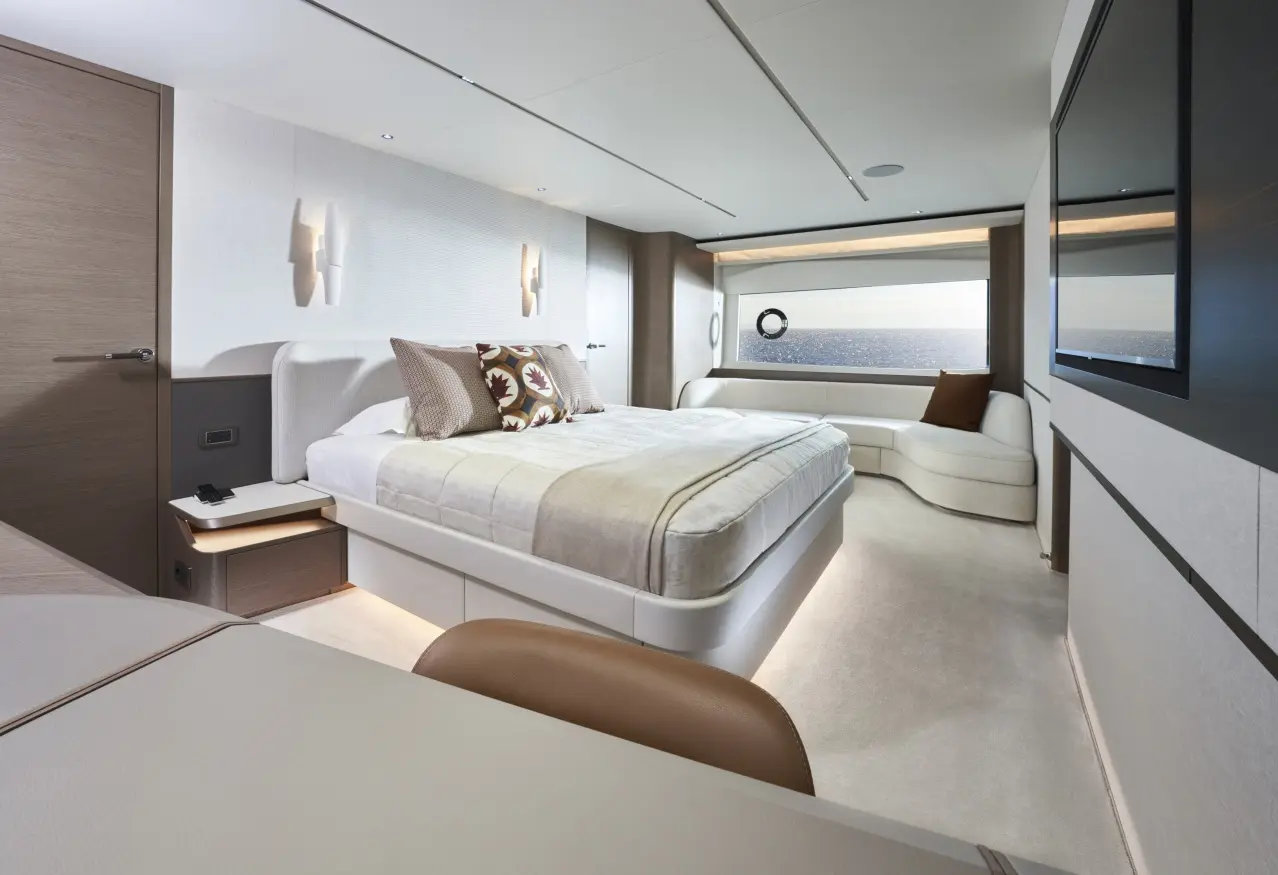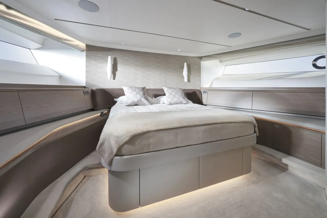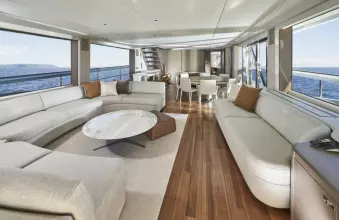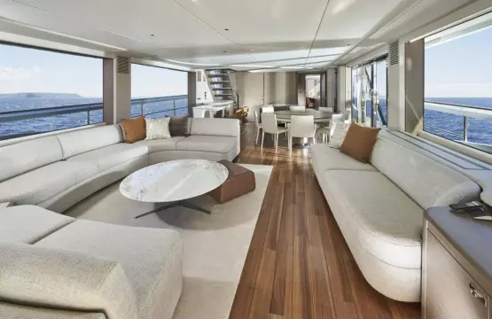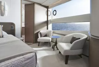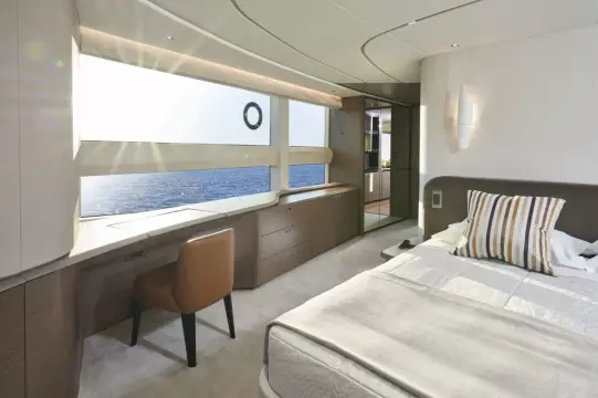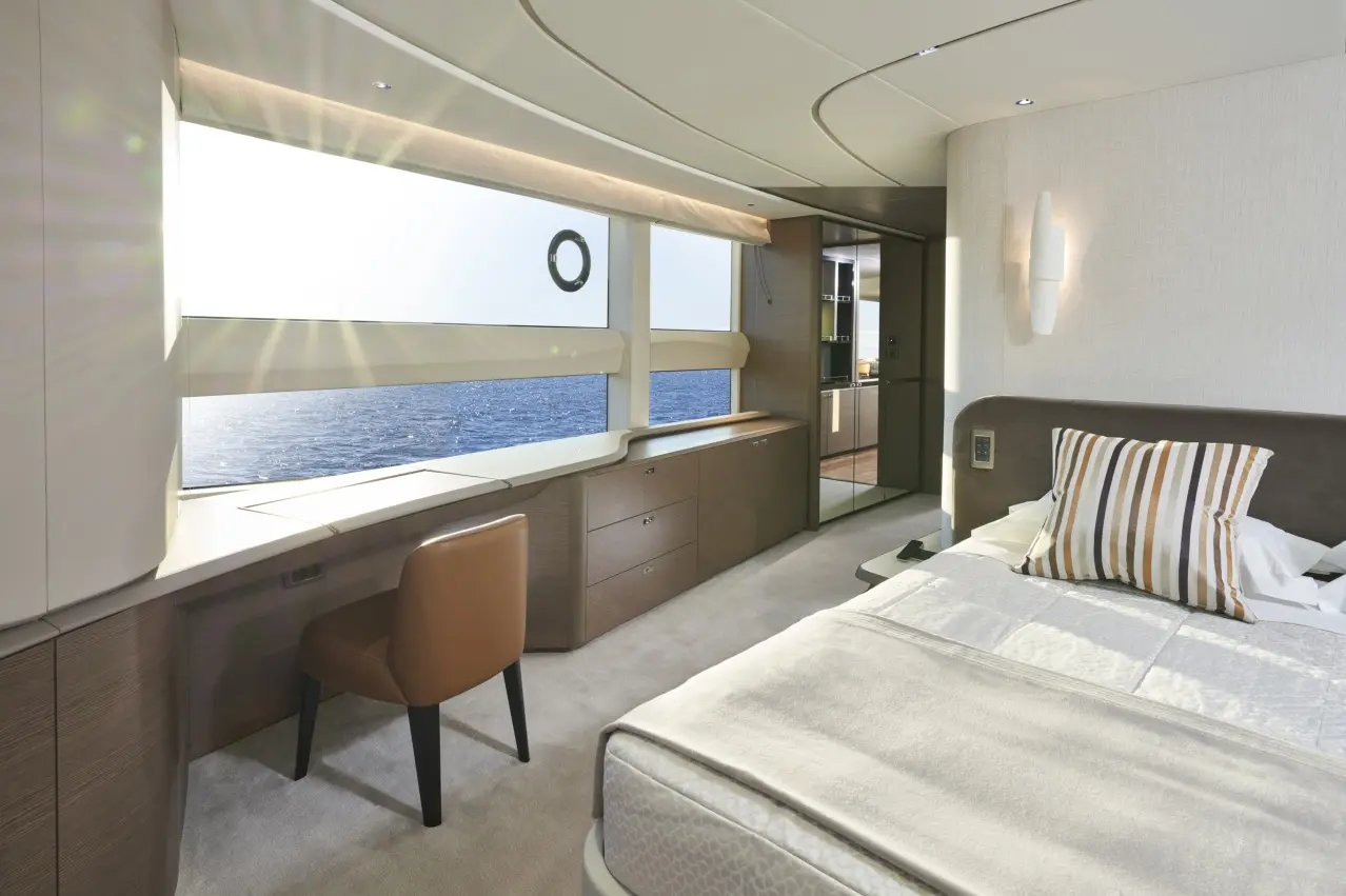 The yacht accommodates up to 10 guests across 5 luxurious staterooms, including a full-beam master suite on the main deck—a rare feature in this size range. All guest areas are bathed in natural light and finished to the highest standards, offering the perfect retreat for long voyages.