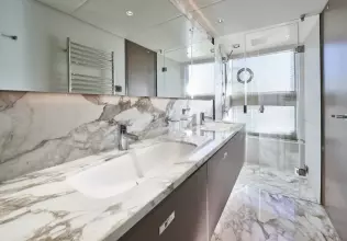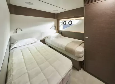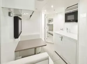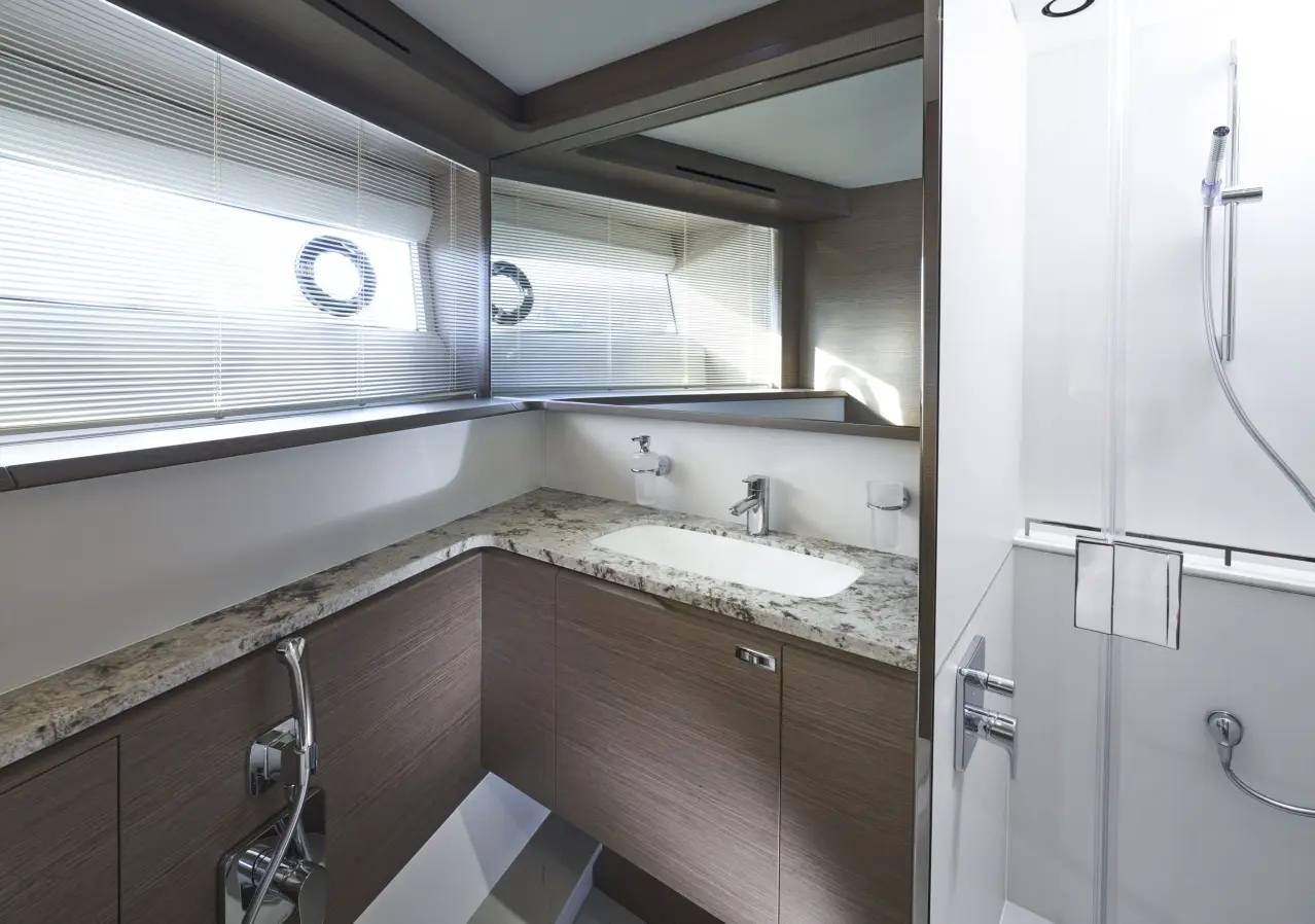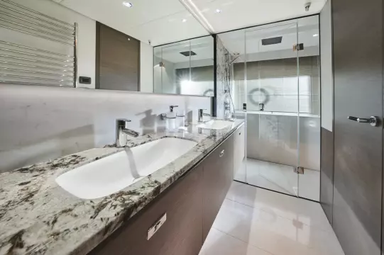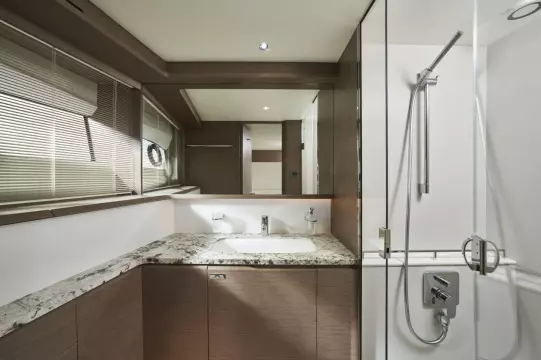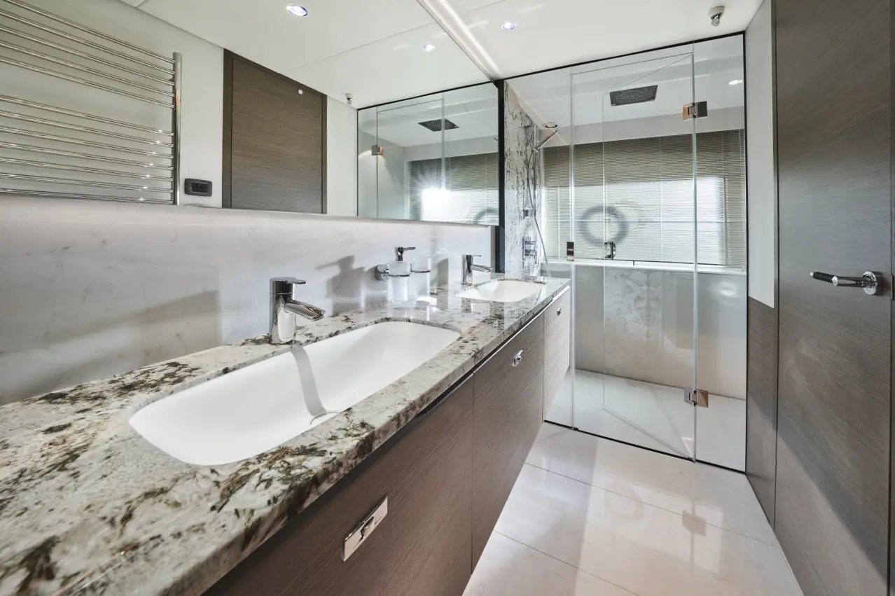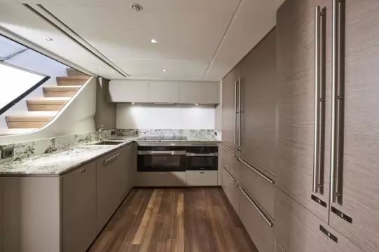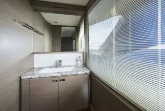 The yacht accommodates up to 10 guests across 5 luxurious staterooms, including a full-beam master suite on the main deck—a rare feature in this size range. All guest areas are bathed in natural light and finished to the highest standards, offering the perfect retreat for long voyages.
