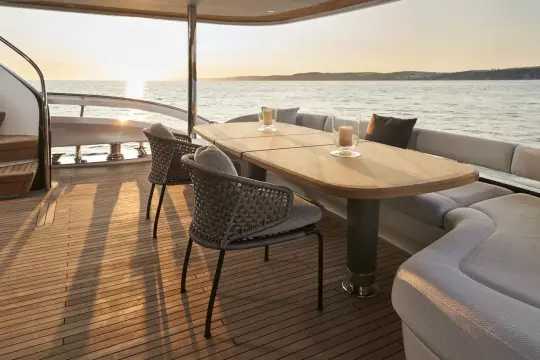 With her revolutionary superflybridge layout and bold architectural lines, the Princess X95 offers unrivalled interior and exterior space for a yacht under 30 meters. From the expansive aft deck to the panoramic sky lounge, every area has been crafted for entertaining and relaxation at sea.