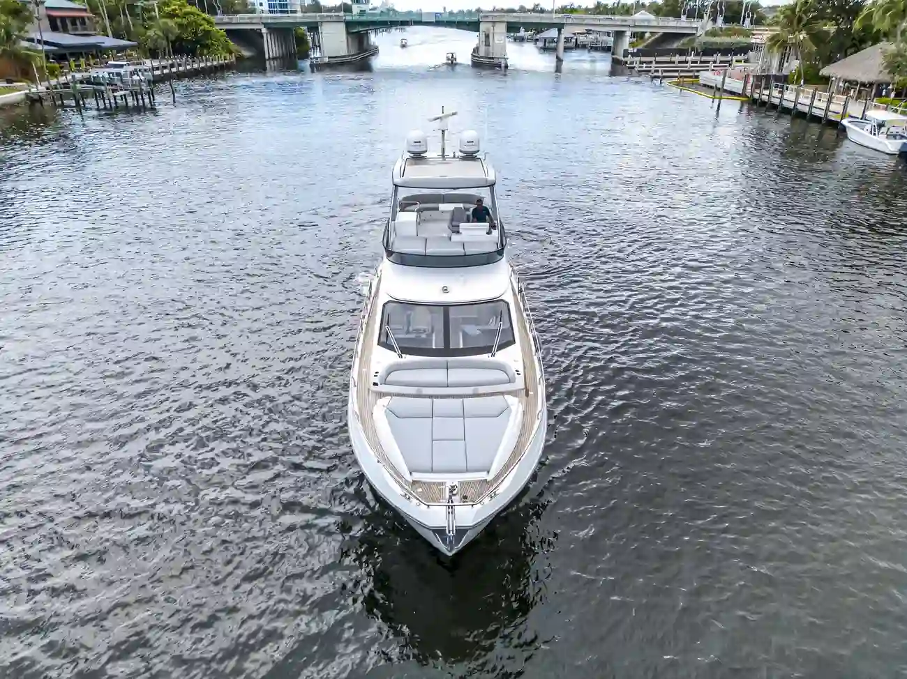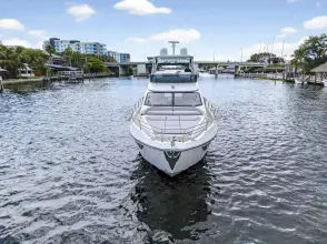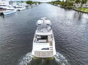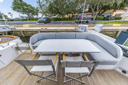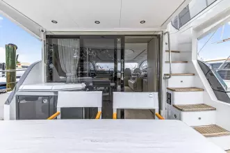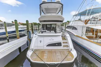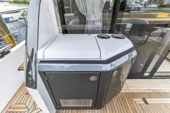 Advance Package: Additional control for searchlight, cover for flybridge, sunbathing cushions on bow, covers for exterior helm seats and fly sofa, decor upgrade, double racor filter, electric mooring winches in cockpit, extra conduits, mesh covers for windows, miele appliances, predisposition for water maker.