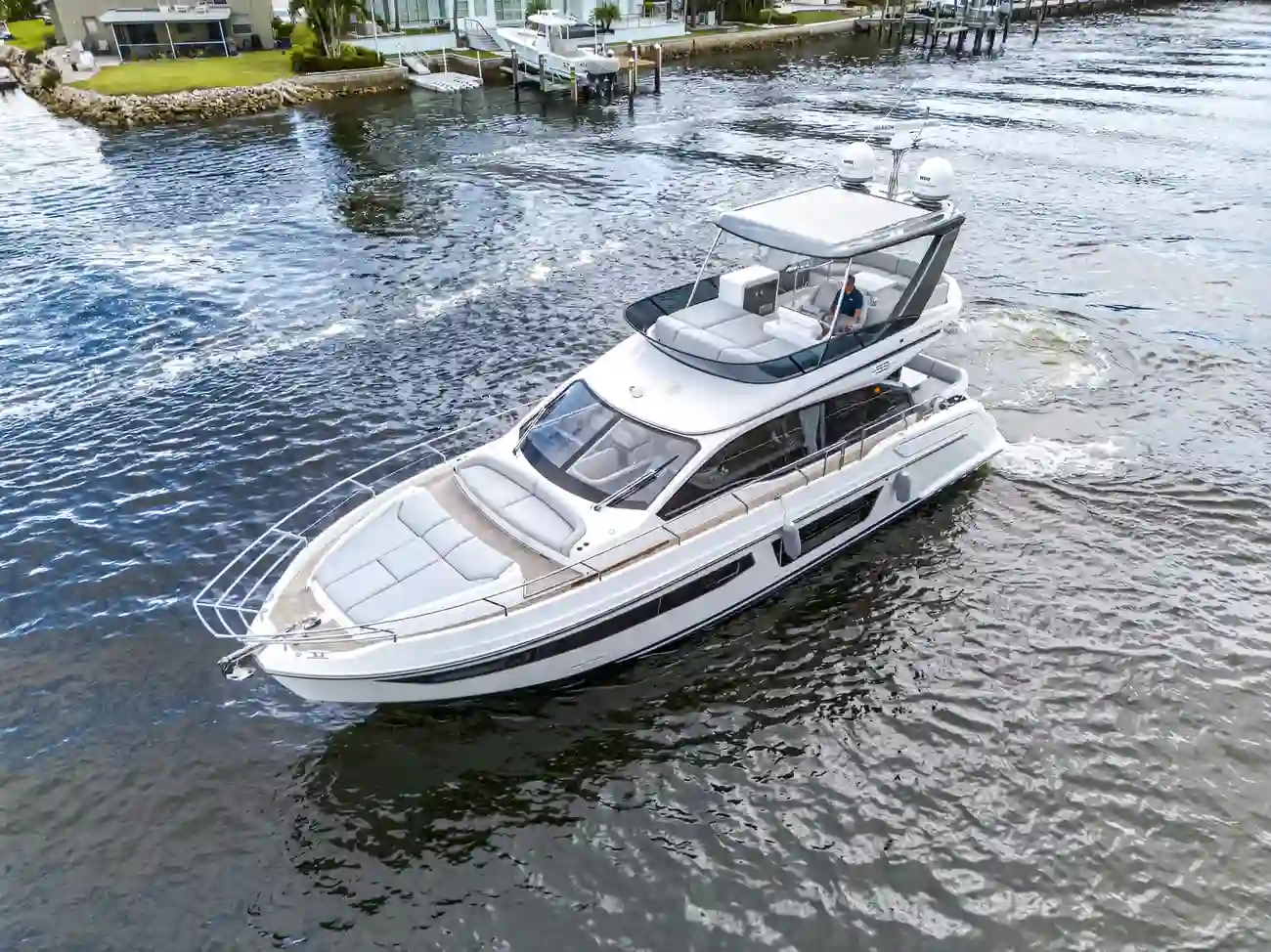 Every detail of the Azimut 53 FLY reflects exceptional craftsmanship, from expansive indoor living spaces to sun-drenched flybridge decks. Luxurious materials and meticulous attention to detail create a refined atmosphere perfect for relaxation or entertaining guests.