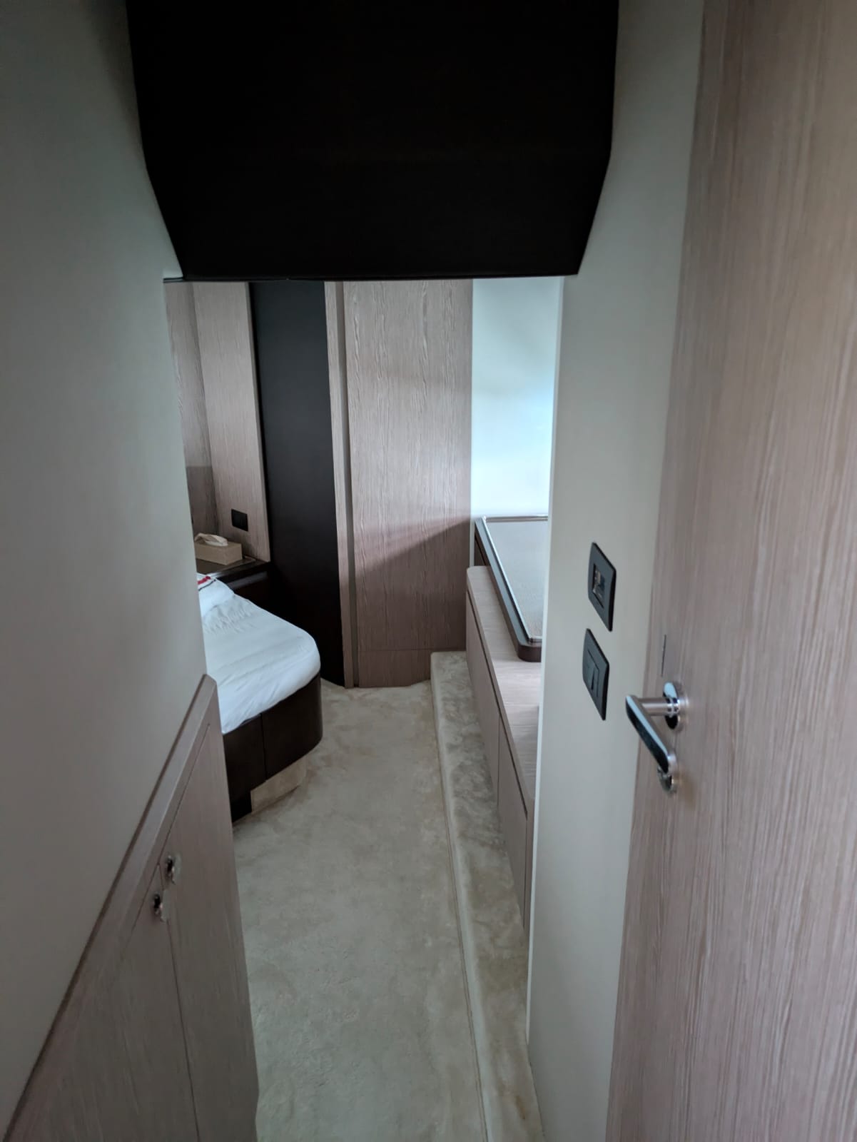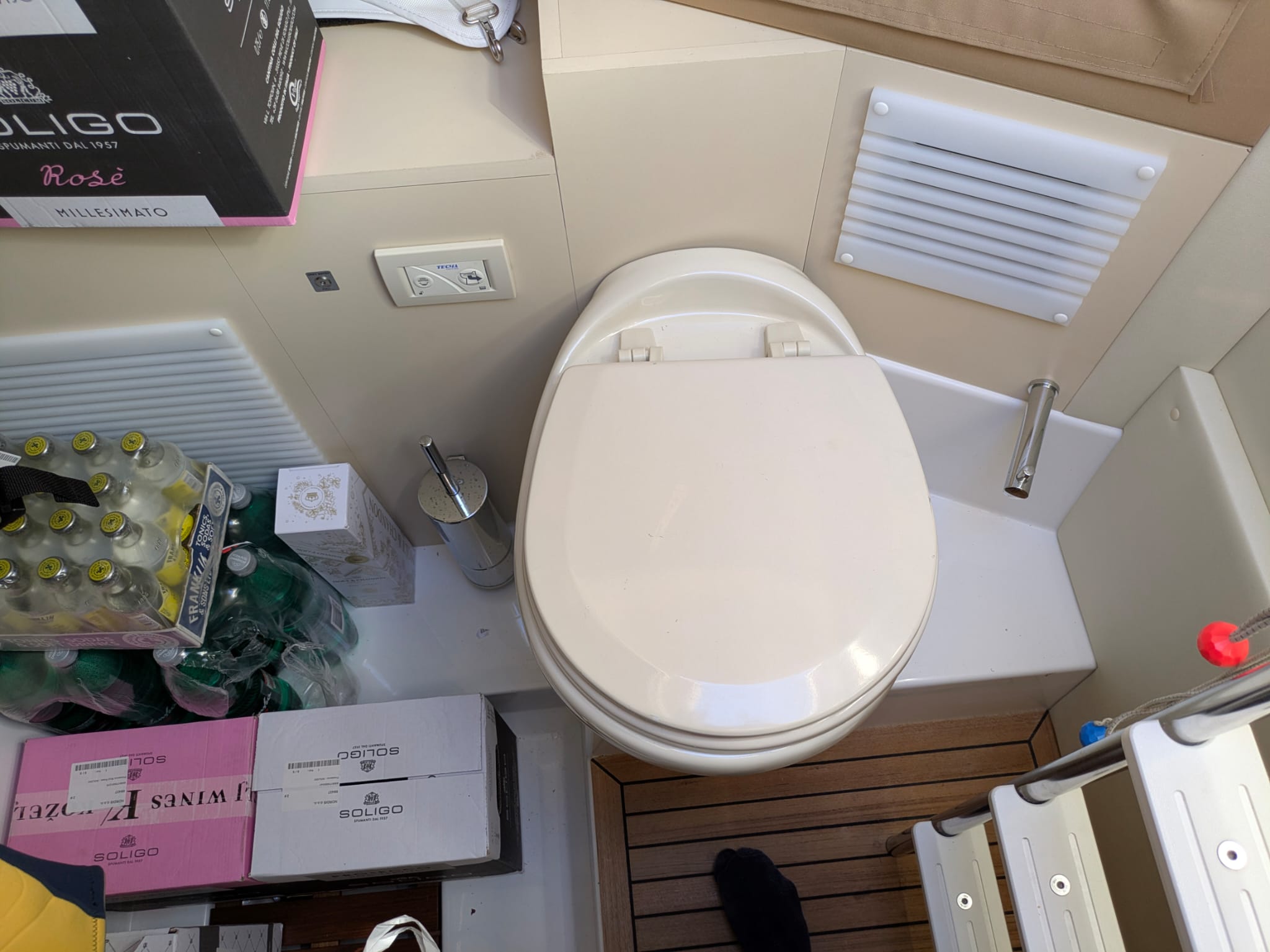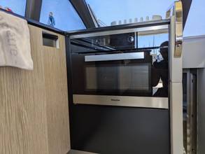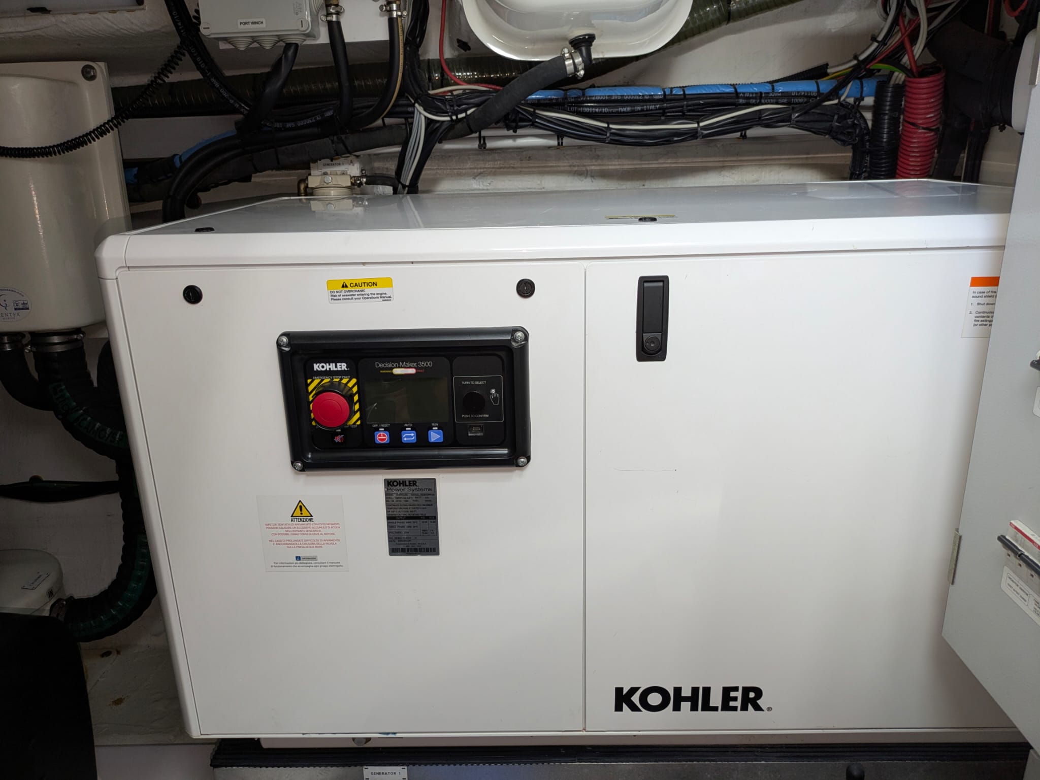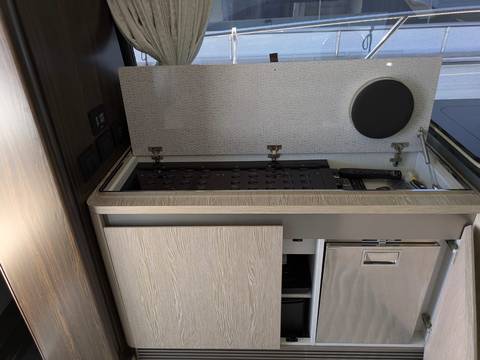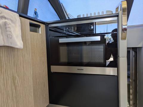 2nd refrigerator, glass ceramic cook top, dishwasher, washing machine, dryer, watermaker, toilet electric, owner cabin, guest cabin, bow cabin, salon, head, steering position inside, fire extinguisher system, shore supply 220V, radio, TV antenna satellite, cockpit cover, suncushion, warm water system, transom door to bathing platform, teak deck, cockpit table, bathing ladder, tender garage, under water light, 220V plugs, underwater paint, holding tank, anchor windlass bow electric, anchor windlass stern electric, search light remote controlled, bathing platform hydraulic, gangway electric, trim tabs, electric/hydraulic, stern shower warm/could