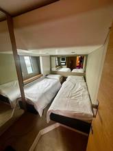 2nd refrigerator, glass ceramic cook top, dishwasher, icemaker, washing machine, dryer, watermaker, toilet electric, separate crew cabine, owner cabin, guest cabin, bow cabin, salon, head, fire extinguisher system, shore supply 220V, radio, sun shade / aftdeck, suncushion, pressurized water system, warm water system, transom door to bathing platform, wetbar, bathing ladder, 220V plugs, underwater paint, holding tank, anchor windlass bow electric, searchlight, bathing platform hydraulic, gangway electric, trim tabs, electric/hydraulic, stern shower warm/could