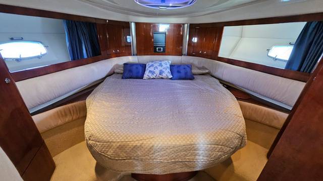 2nd refrigerator, glass ceramic cook top, toilet electric, owner cabin, guest cabin, bow cabin, salon, head, fire extinguisher system, shore supply 220V, radio, cockpit cover, suncushion, pressurized water system, warm water system, bathing platform integrated, transom door to bathing platform, wetbar, cockpit table, bathing ladder, 220V plugs, underwater paint, holding tank, anchor windlass bow electric, searchlight, gangway electric, trim tabs, electric/hydraulic, stern shower warm/could