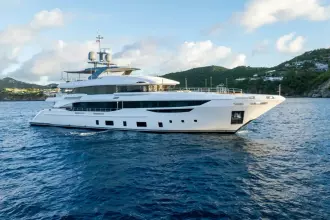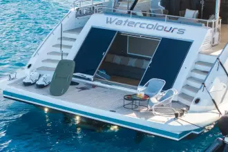 Representative of Benetti’s distinctive style, sophistication, and exclusivity, WATERCOLOURS is a stunning 44m tri-deck superyacht that embodies fine Italian artistry with exceptional performance. Built by the renowned Benetti shipyard, this yacht masterfully balances cutting-edge design and luxurious features for an unparalleled blend of adventure and relaxation, enhanced by state-of-the-art stabilizers for ultimate cruising comfort. As the flagship fiberglass motor yacht of the Benetti fleet, she offers multiple seating areas, alfresco dining spaces, a foredeck jacuzzi, large swim platform, contemporary beach club, and an array of water toys.
