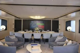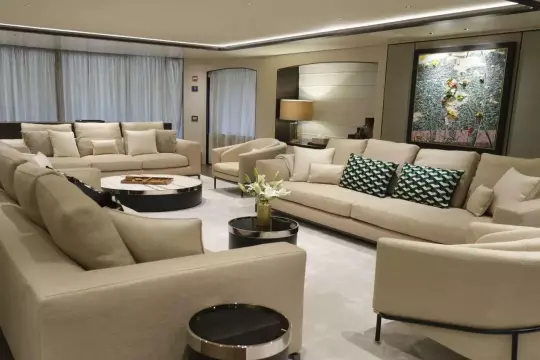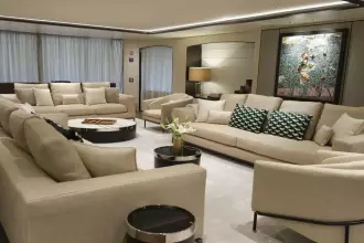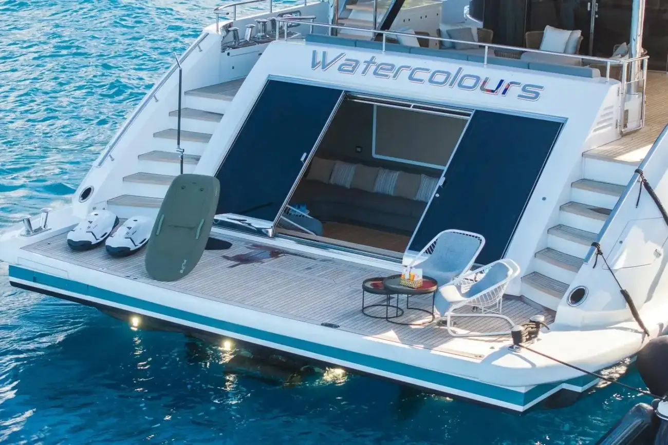 Brought to life by Achille Salvagni, WATERCOLOURS' interiors blend classic sophistication with modern flair, defined by bright neutral tones, warm furnishings, subtle hints of gold, and extensive marble use for an inviting atmosphere. Highlights include the upper salon and dining for intimate gatherings, a spacious main salon for lounging, an expansive full-beam master suite with large ensuite, dressing room, and gym, two VIP cabins for ultimate comfort, and two twin cabins with ensuites. Every space maximizes indoor-outdoor flow for a serene onboard experience. Water Toys: For Infinite Fun Equipped for adventure and tranquility – all are negotiable with sale: