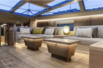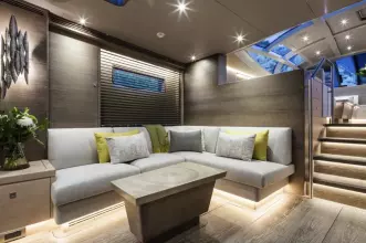 Liara also features a powerful 190 Kwh High Voltage DC power pack. This enables all onboard systems (including deck winches, air conditioning, galley utilities etc) to operate in 'quiet ship mode' for up to 8 hours without the need to run the generator.