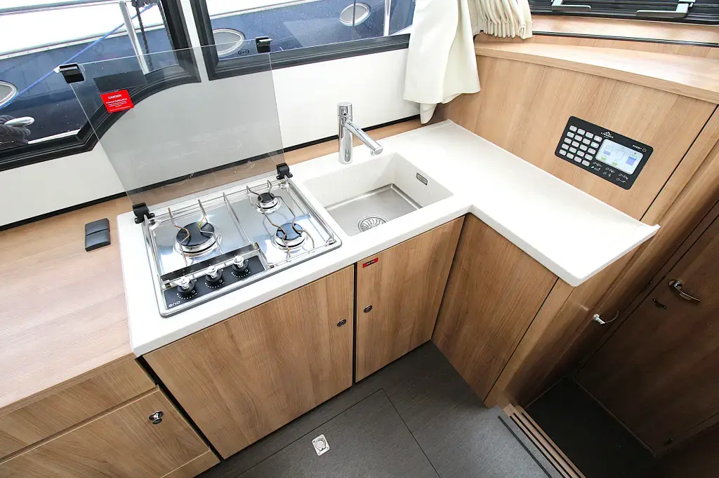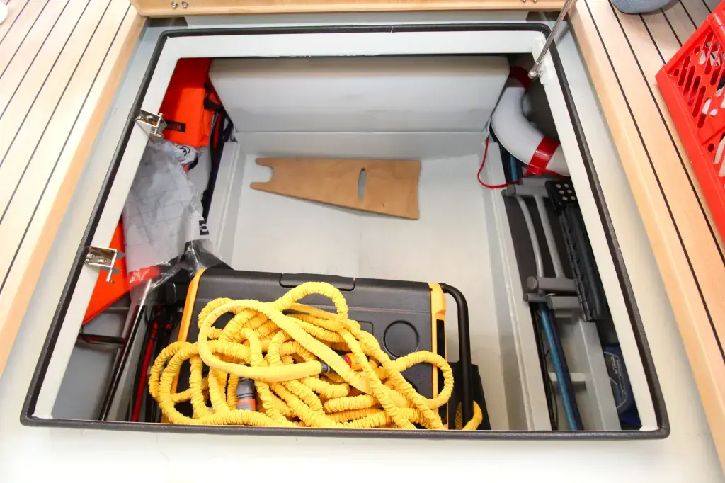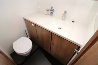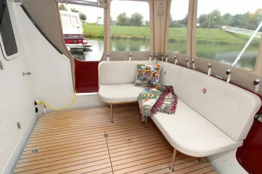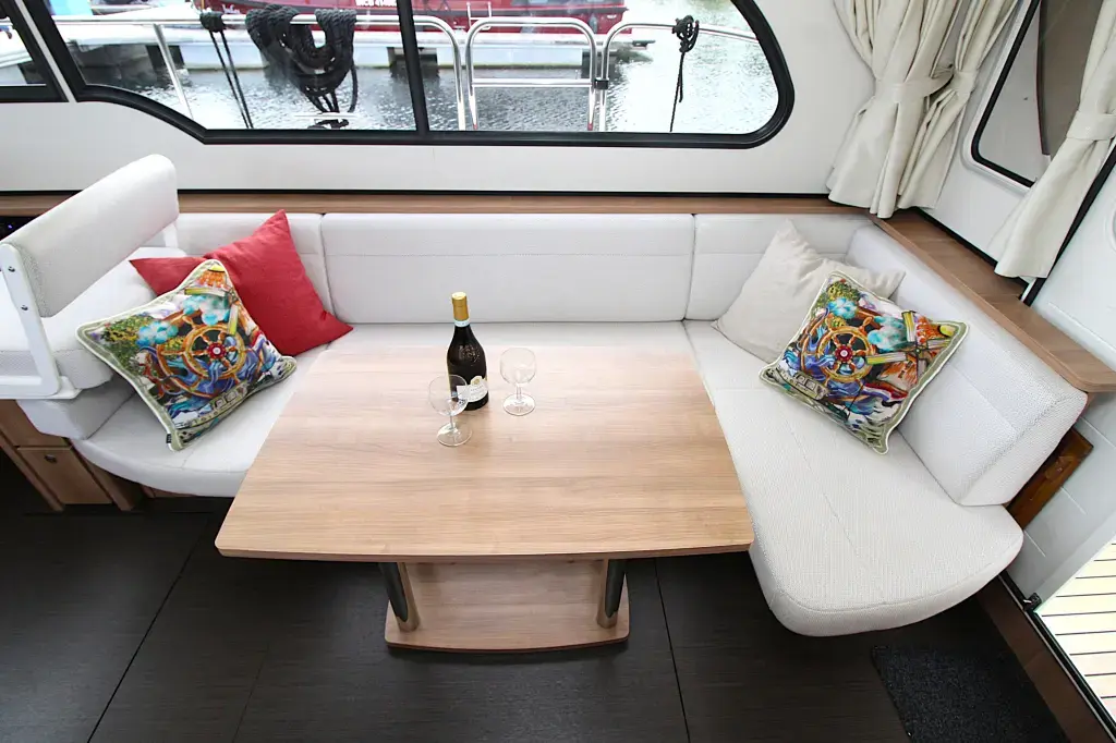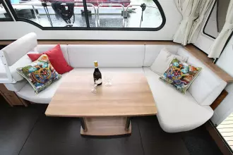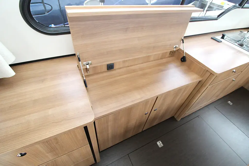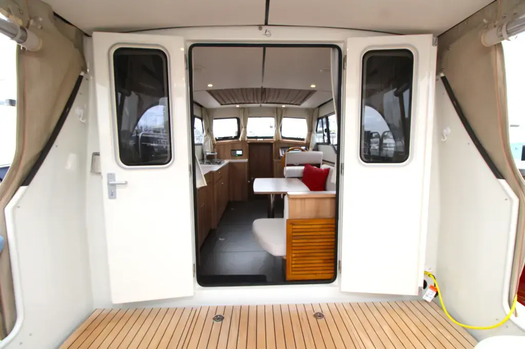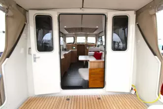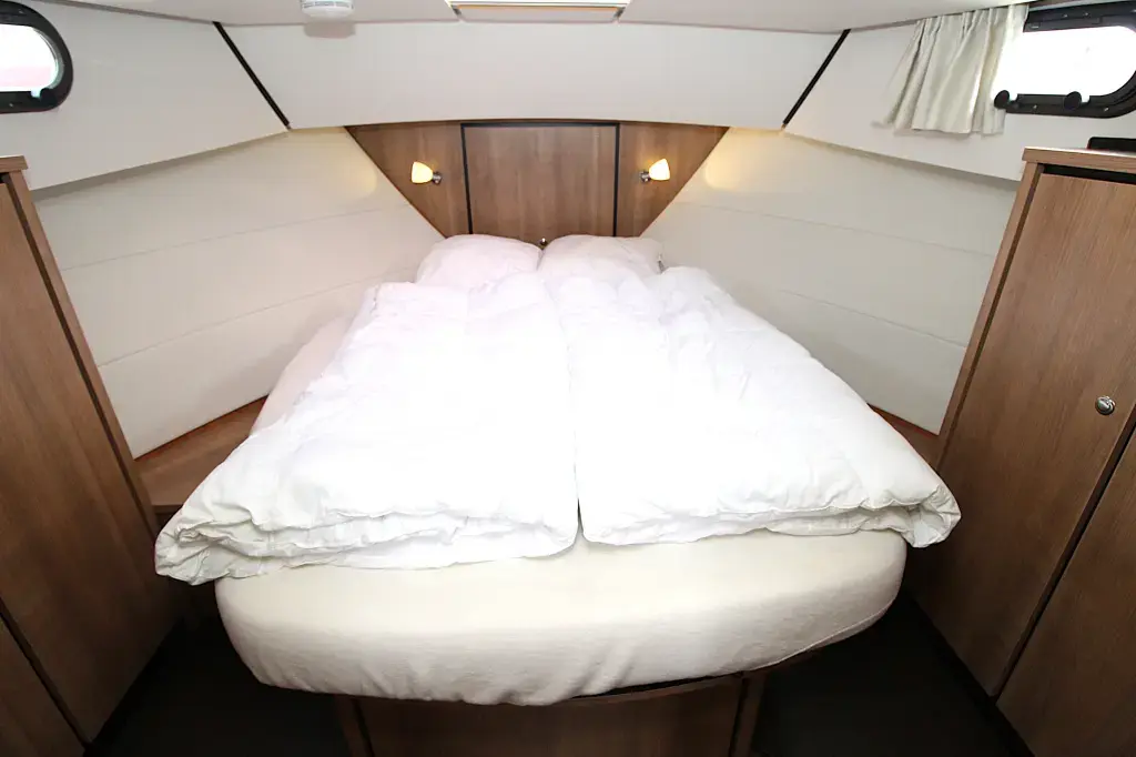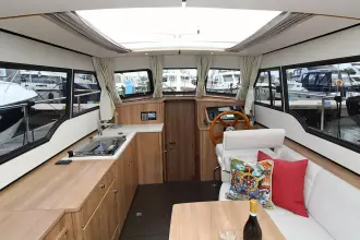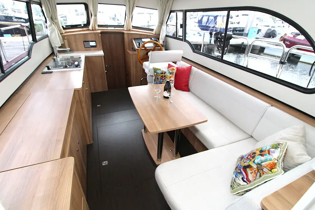 The boat offers a smart and comfortable layout with a spacious saloon, galley, a generous master cabin, and a separate shower and toilet. Thanks to the well-thought-out design, you'll enjoy ample living and storage space.