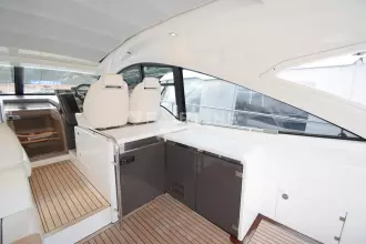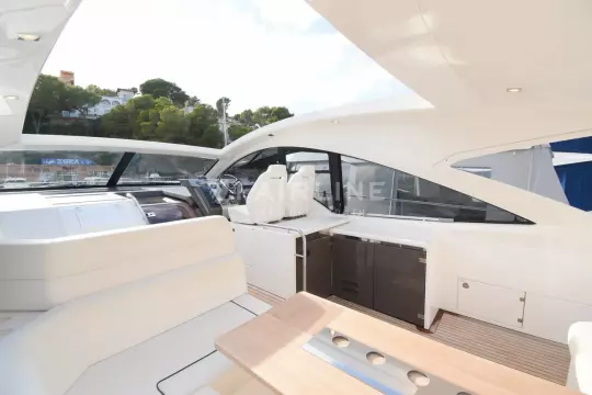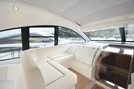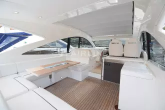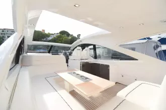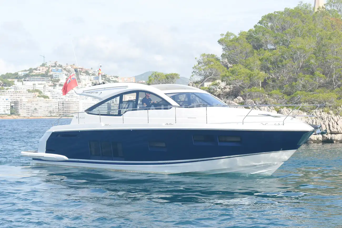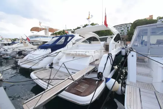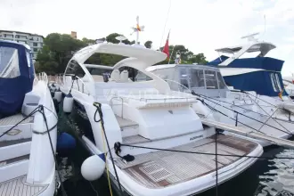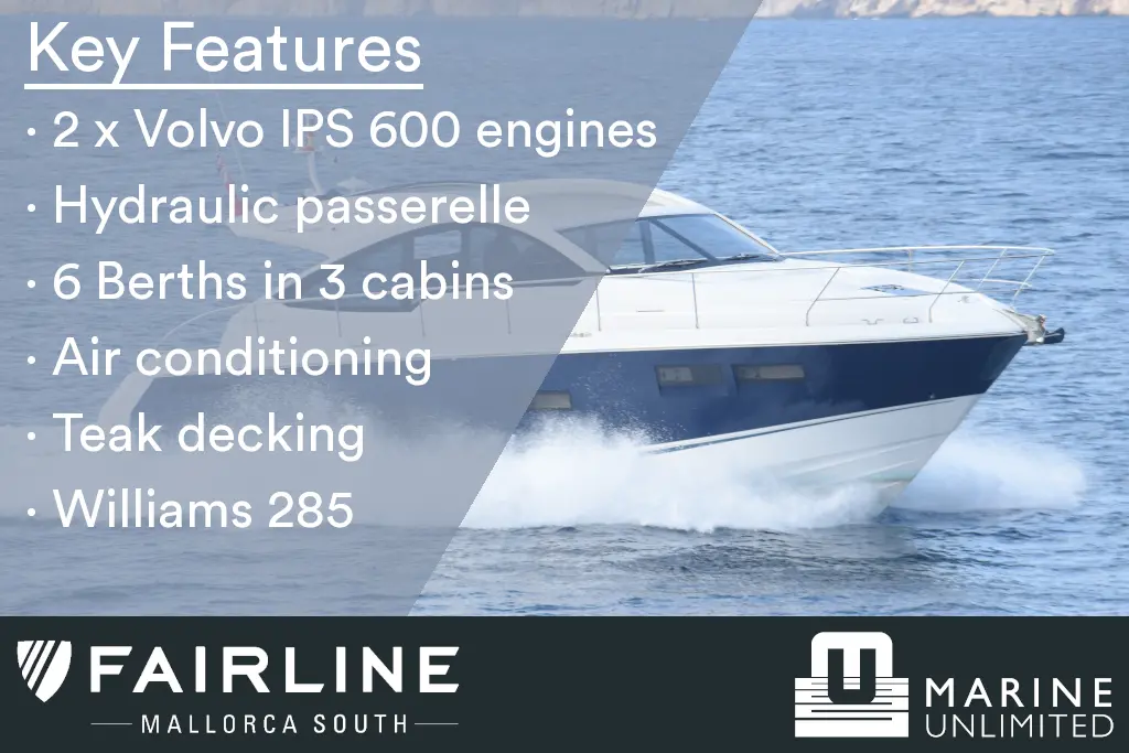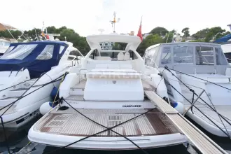 This “ONE OWNER” Targa 48 Open has been kept in superb condition with low engine and generator hours. A rare example with the 3rd cabin option sleeping up to 6 very comfortably! Professionally maintained and serviced by a Volvo Penta main dealer since new. The experienced owner has wintered ashore most years despite owning the mooring! The Targa 48 open is an ideal design for cruising, with ample space for exterior socializing whilst offering a well-appointed spacious accommodation. Inventory highlights include air conditioning, Onan 11kva generator, hydraulic passerelle, Hi-Lo bathing platform, teak-laid decking throughout, Williams 285 Turbo Jet and much more. EU Tax Paid!