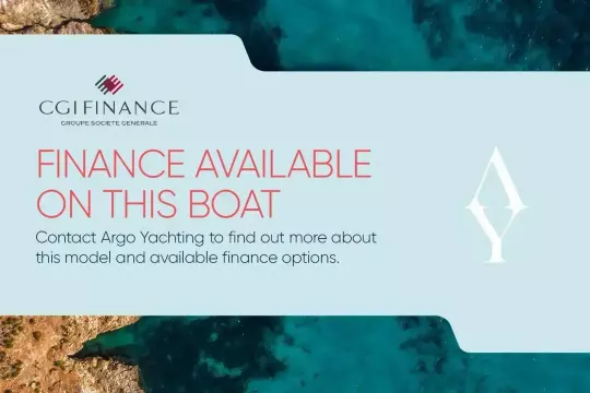 Ex tax • 2007 model, built 2006 • Twin Volvo Penta D12 800 EVC 1550HP Diesel engines • White hull • 3 cabins accommodating 6 guests • New SeaDek on deck in 2025 • Hydraulic gangway • Large garage for 2.8m tender • Raymarine navigation equipment • Onan generator 13.5kW • Bow thruster • Stern thruster • Air-conditioning/heating • Fusion music system • Sharp TV