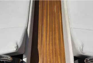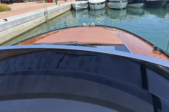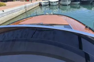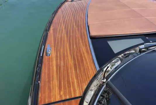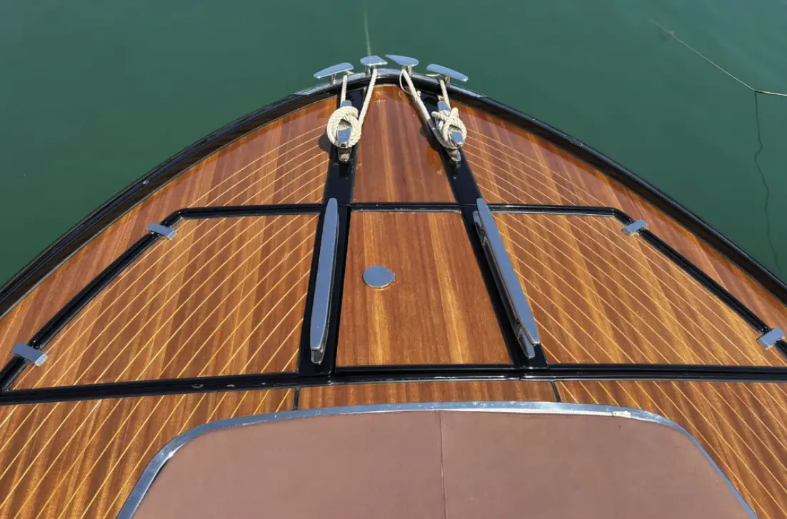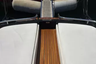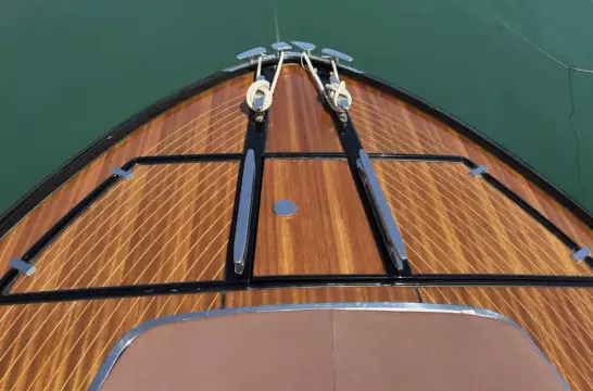 - Foredeck, side steps, rubbing strake, and cockpit sole made of mahogany