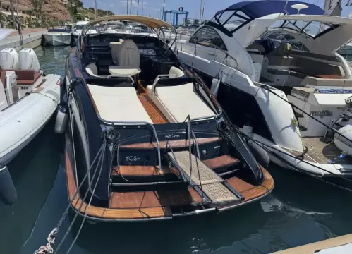 Connector, Bow Anchor Capstan, Bow Thruster, Ceran Stove, Chartplotter, Cockpit Table, Cool Box, DVD Player, Deck Shower, Depth Instrument, Electric Gangway, Electric Stove, Electric Toilet, Fire Extinguisher, Fire extinguisher system, Fridge, Full Cover, GPS, Generator, Icemaker, Microwave, Navigation Lights, Radio, Shore Connection, Sink, Speed Instrument, Swim Ladder, Teak Cockpit, Teak Deck, Trim Tabs, Underwater Paint, VHF Radio, Warm Water System, Wetbar, iPod Interface, Bose Surround System in Salon