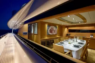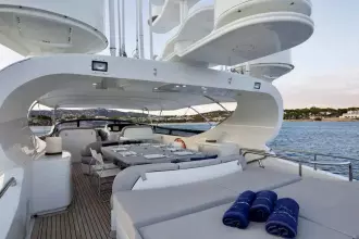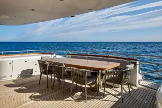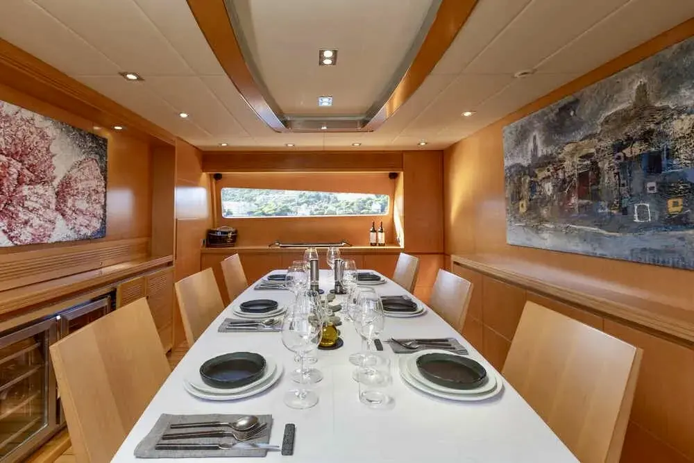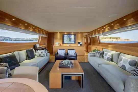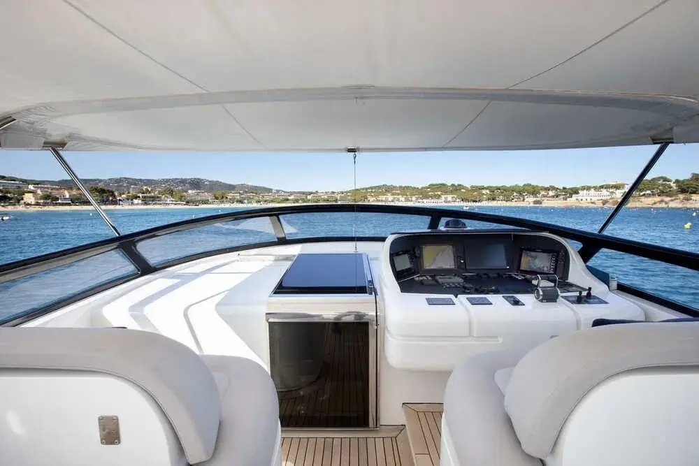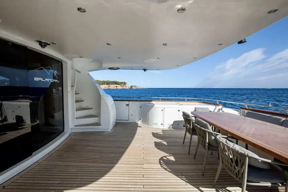 M/Y BALANDRAU is a Maiora 31 DP presented in excellent condition and fully ready to sail, following a major refit completed between 2024 and 2025. Maintained year-round by a professional crew, she offers timeless exterior lines and expansive decks designed for comfort and outdoor living. The spacious cockpit, large hydraulic bathing platform, and exceptional flybridge with bar, sunbathing, seating, and helm create ideal areas for relaxation and long passages. Inside, the bright and elegant interior features a welcoming saloon, formal dining, and a fully equipped galley. Accommodation includes an aft master suite, three en-suite guest cabins, and separate crew quarters, delivering luxury, privacy, and refined cruising throughout.Mechanic Equipment 2 x 5-blade DETRA propellers 2 x ONAN 40KWA generators 1 x ONAN 22.5KWA generator Trac Zero-Speed hydraulic stabilisers (navigation and anchoring) BCS 85HP bow thruster BCS 45HP stern thruster Hamman sanitation system Alpha Laval fuel centrifuge 2 x Idromar 180 L/H watermakers Electronic and Navigation AIS Arpa JRC Radar JRC Electronic Charts JRC Navtex JRC GPS DKART ECDIS Electronic Charts SIMRAD Chart Plotter Kongsberg Sonar Simrad Radar Raytheon Gyroscopic Compasses Plath Magnetic Compass Raytheon Steering System Humphrees Interceptors Inmarsat F77 + Inmarsat C Seatel Hellas Sat VoIP Communications and 2.0 Mbps Internet DSC VHF + DSC SSB Avaya PBX G30 Cisco LAN Network + Cisco WIFI Network Global Maritime Distress and Safety System (GMDSS) Universal Mobile Telecommunications System (UMTS) Global System for Mobile Communications (GSM) Electric Condaria 180,000 Btu air conditioning with fresh air unit 2 x A/Sea Power Converters REFIT• PORT ENGINE New injectors New pistons New cylinder liners New exhaust manifolds • STARBOARD ENGINE New injectors New exhaust covers • MAIN GENERATORS New injectors New pistons New cylinder liners New gaskets • STABILISERS New hydraulic hoses • ELECTRONICS New navigation and safety equipment on the main deck and flybridge (GPS plotter, radios, autopilots) New satellite television antenna Installation of interior home automation control for curtains, lights and doors via the Gira mobile app • HULL Completely sandblasted, primed and painted with new antifouling • SUPERSTRUCTURE Complete repainting with Awlgrip • OTHERS Renewal RINA class certificate in October 2025, valid until 2030 New wine refrigerator in the lounge/dining room