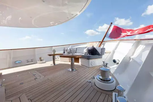 On deck the yachts explorer yacht credentials really come into their own. Far Niente has wide walk around teak laid side decks with really safe high bulwarks. Access around the whole main deck is seamless and very safe – this being particularly appealing when cruising offshore or taking on more challenging sea conditions. There is low level lighting along the side decks.