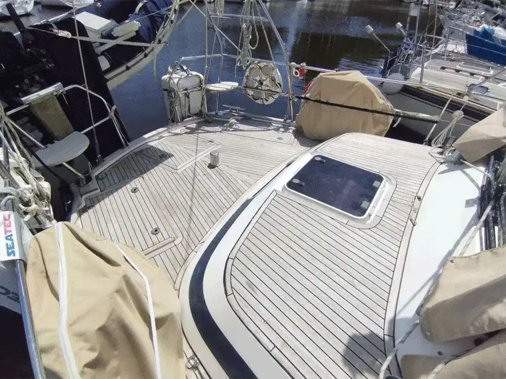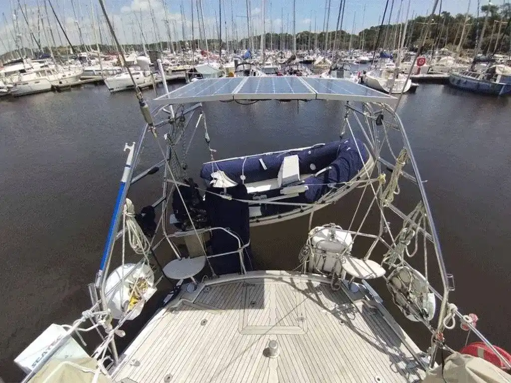The Sunbeam 42 with center cockpit and deck saloon layout is excellent for long-distance cruising. Robust, seaworthy and very comfortable. The blue hull livery new from 2019 looks very elegant. Detailed information on request! Navigation equipment: DSC vhf (Simrad RS 25 mit handheld station), Depth Sounder (Raytheon), GPS (Raytheon), MeteoFax (ICS Nav6 mit Repeater), Autopilot (Raytheon, Steuereinheit neu 2021), Chartplotter (Simrad NSS7 (AIS)), Radar (Raytheon und MARPS Detektor), Wind Station (Raytheon), Satellite Phone (Iridium). Staging and technical: 2 Anchor (Bügel Anker mit 80m Edelstahlkette und FOB Anker 50m Leine und 5m Kette), Water pressure pump (aus 2022), 5 Batteries (3 x 240A, Service aus 2024, 2 x Starter, 12V 95A 1 x aus 2019, 2 x 12V 95A aus 2023 für Bugstrahlruder/Ankerwinsch), Teak Side Decks, Battery charger (Quick 60A), Bow Thruster (Vetus 80kg, gewechselt 2023), Secondary Propeller (3-Blatt), Crane (aus 2015), Courtesy Lights (LED aus 2017), Battery Monitor (Messgerät), Solar panels (300W), Gangway, Platform (Badeplattform integriert), Teak Cockpit, Electric Windlass (Lofrans Tigres 1200W/12V), Strand rigging (neu in 2015), cockpit table (klappbar, mit Verlängerung), Tender (Zodiac Cadet 260 aus 2016 mit Außenborder Suzuki 10PS, ca 40h, Service in 2023), 2 Winch (Harken), 4 Winch Electric (Harken). Domestic Facilities onboard: Safe, Watermaker (Dessalator D60 Duo (12/220V), wurde seit 2019 stillgelegt, ist aber wieder anschließbar), Inverter (12V/230V Sinus 900W aus 2014), Heater (Webasto), Electric Toilet. Entertainment: Speakers (im Cockpit), Radio AM/FM. Sails accessories: Jib Furling System, Mainsail Furling System, Rod Kicker. Kitchen and appliances: Galley (Doppelspüle), Burner (2-flammig, Gas, ENO und Dunstabzugshaube), Refrigerator (im Salontisch), Mechanical Refrigerator (in der Panty), Washer (Kenwood 220V in der Duschkabine). Upholstery: Bimini (Dune Sumbrella aus 2014), Sprayhood (Dune Sumbrella 2014), Cockpit Cover (Dune Sumbrella aus 2021, beim Segeln nutzbar), Cockpit Cushions, Instrument Cover (und div. weitere Persenninge). Accessories notes: Fisher Panda 6KVa generator ca 490h, new diesel pump 2021 / 3-blade Gori folding propeller Backstay for SSB Antenna / Alternator Regulator Sterling 3-Stage / Solar Panel Regulator STECA 30A Carpet from 2021 / Interior lighting LED from 2017 Bowsprit and bow ladder, stainless steel / custom-made stern crossbar with integrated davits and solarx MOB1 Ocean Rescue Man Overboard 40 m floating line on a stainless steel drum various spare parts/ 2 electr. Folding folding bikes with a finished cover