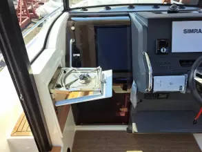 C8 is a flexible and comfortable year-round commuter that works just as well whether you are traveling alone or with company. Despite the smaller size, we have prioritized space that makes it easy to get on or off and move onboard. The trick with the C8 was to build in the same high level of functionality and flexibility as the C9 but in a smaller hull, says Joacim Gustavsson, chief designer at Nimbus Boats Sweden AB. The foredeck of the boat offers a multi-functional space with seating that can be transformed into lounge, chill or drive mode depending on the situation. The light and spacious cockpit offers plenty of natural light thanks to its extra-large glass doors, the sliding glass roof hatch and the openable aft deck hatch. The boat can easily be transformed from closed to open within seconds. In addition to creating a light and open boat, the large aft glass hatch makes loading and unloading the boat easy and efficient plus it makes communication between the crew outside and inside smoother.