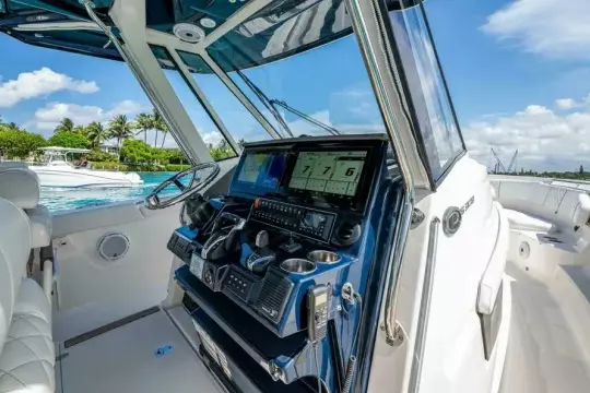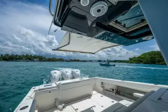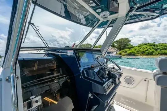 In real use, this boat is a solid sea-kindly platform — she handles chop, turns well, and stays composed when pushed. The build quality and systems are what you expect from Pursuit’s Sport line.