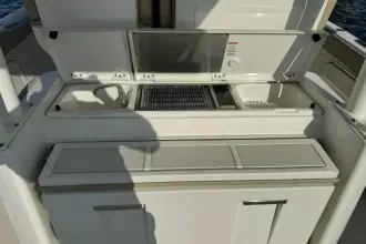 • Electric grill, cockpit refrigerator, sink, and freshwater shower