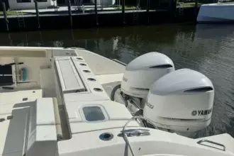This 2020 model is loaded with the right options and has been meticulously maintained. With twin Yamaha F300s showing around 560 hours, she delivers reliable performance and efficiency with full digital controls and effortless maneuvering.