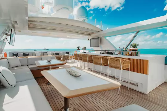 • Beach club at stern with bar, access to water toys and dedicated entertainment space