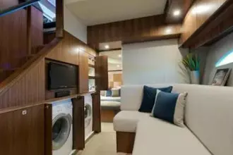 Befitting a motor yacht of this calibre, all on-board appliances, entertainment and operational systems, fittings and furnishings are premium quality and are a perfect fit with the state-of-the-art technology which helps us set new benchmarks in terms of convenience, reliability and ease of operation.