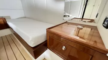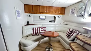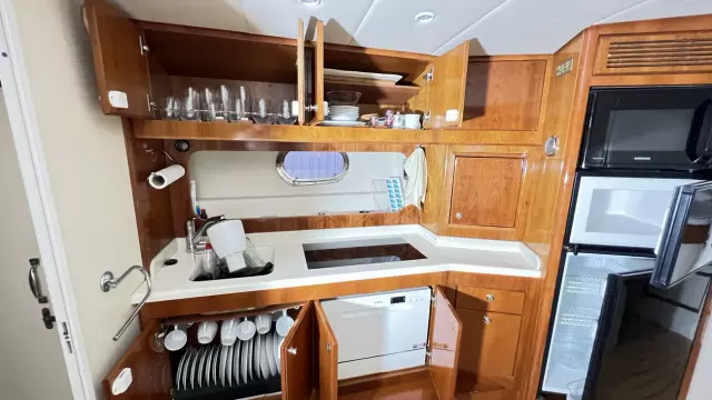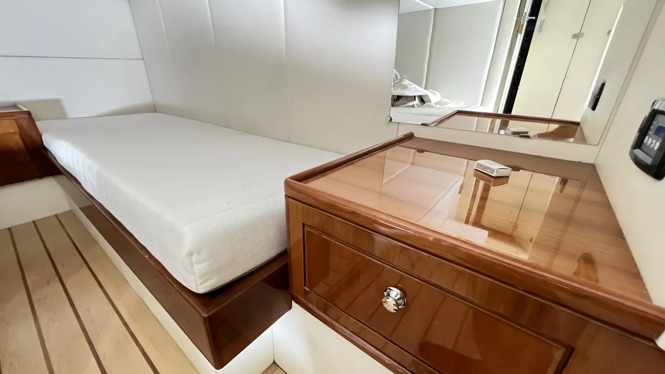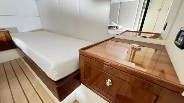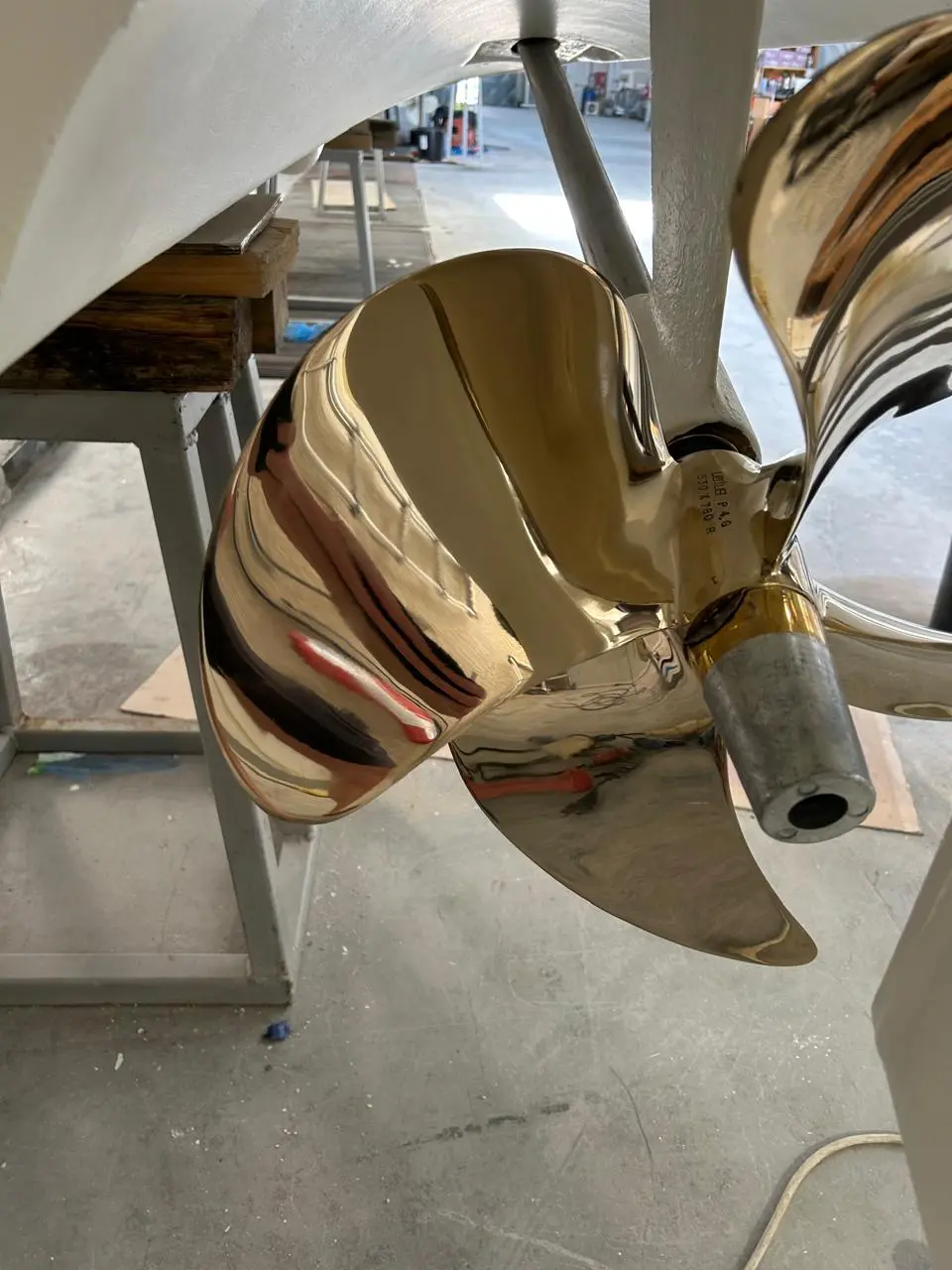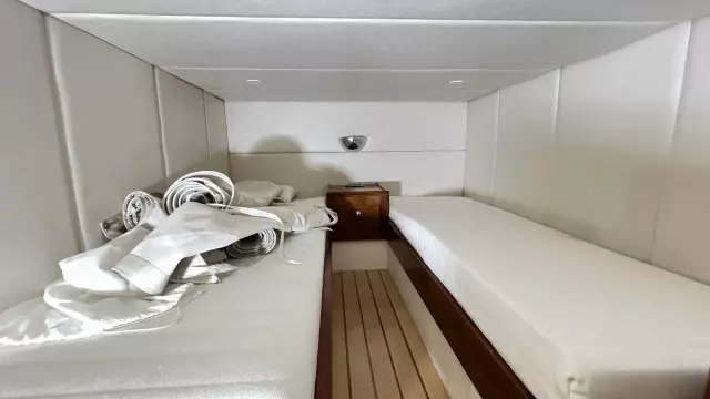 Powered by twin new Cummins 425HP engines, this Baia Zero 43 delivers exhilarating performance, with an impressive cruising speed of 25 knots and a top speed around 32 knots. The boat is equipped with electronic throttles and four-blade bronze propellers for smooth and responsive handling.