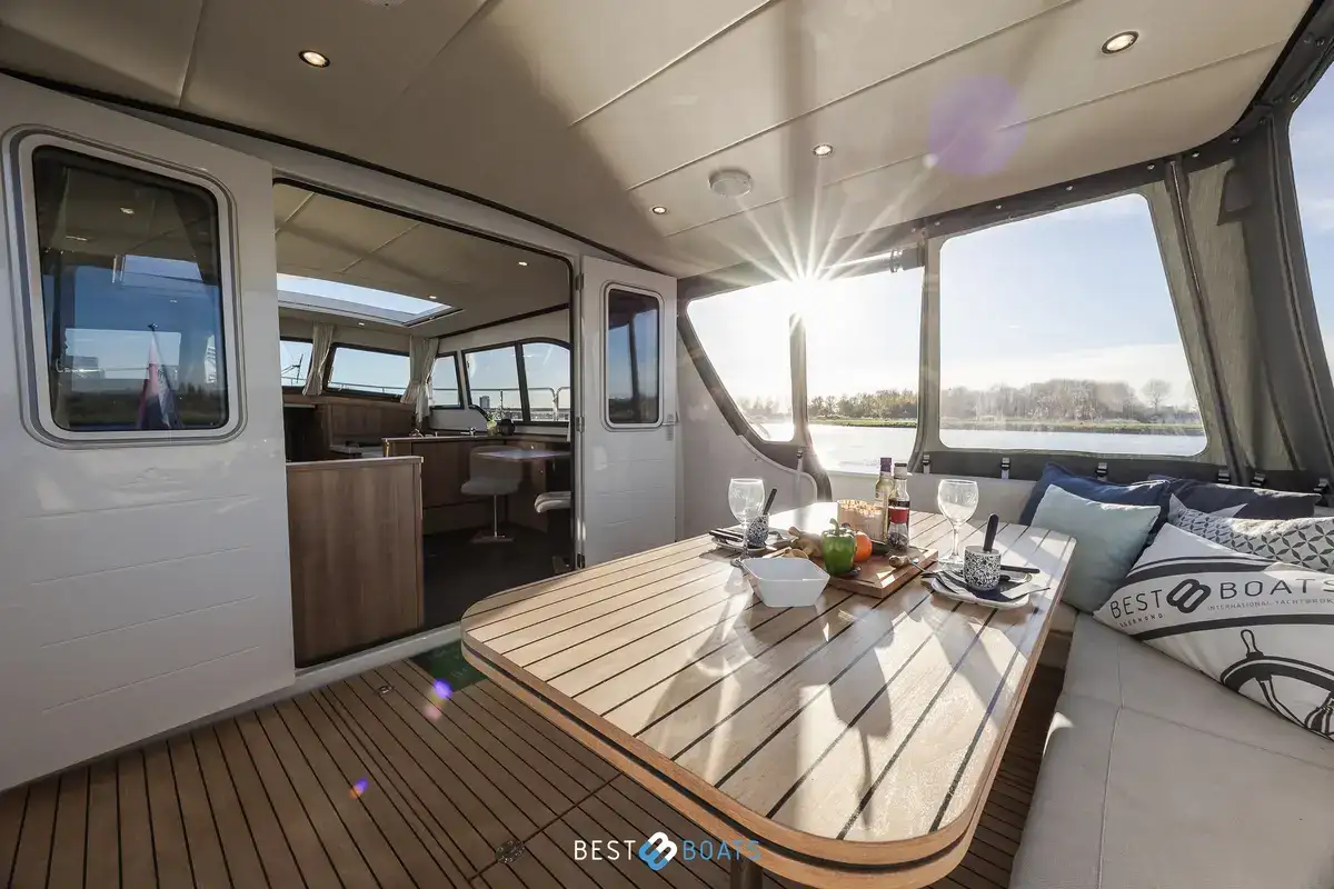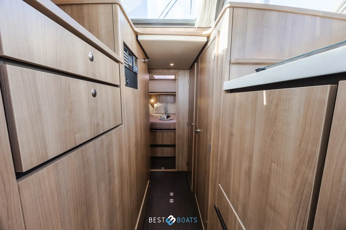 Voor optimaal manoeuvreren en comfort beschikt de boot over proportionele elektrische boeg- en hekschroeven, een hydraulisch stuurwiel, Raymarine navigatie- en communicatieapparatuur, inclusief autopilot en kaartplotter, en een achteruitvaartcamera. Het zwemplateau, de klapbare zwemtrap en de kuipkussens maken het jacht perfect voor ontspannen ligdagen en watersportactiviteiten.