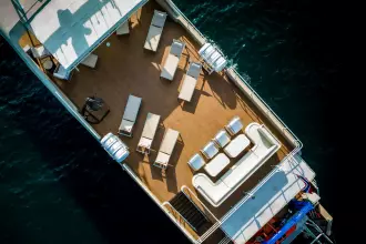 The guest accommodation comprises of eleven detailed cabins, all of which are en-suite. Four twin cabins are found on the main deck along with two double suites forward and another double midships. Moving to the upper deck, three twin rooms are found a long with a large double suite. All accommodation has been carefully thought out and equipped to ensure the highest standards and comfort