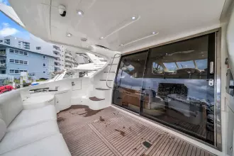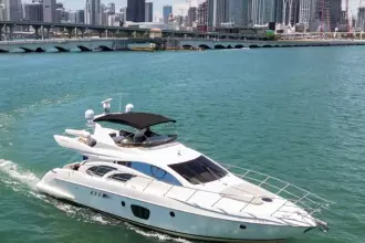 Introducing the stunning 2006 Azimut FLY 55, a remarkable flybridge yacht that combines elegance with performance. With an overall length of 57 feet, this vessel is designed for both comfort and adventure on the water. The deep vee hull, crafted from durable fiberglass, ensures a smooth and stable ride, while the powerful Caterpillar C12 inboard engine delivers an impressive 715 horsepower, allowing for exhilarating cruising speeds of up to 25 knots. Accommodating up to 12 guests, the yacht features four well-appointed cabins and two heads, making it perfect for entertaining or relaxing with family and friends. The electric windlass adds convenience to anchoring, enhancing your overall experience. With a maximum hull speed of 30 knots, the Azimut FLY 55 is ready to take you on unforgettable journeys across the waves. Experience luxury and performance like never before with this exceptional vessel.