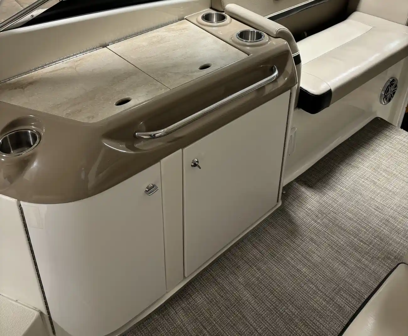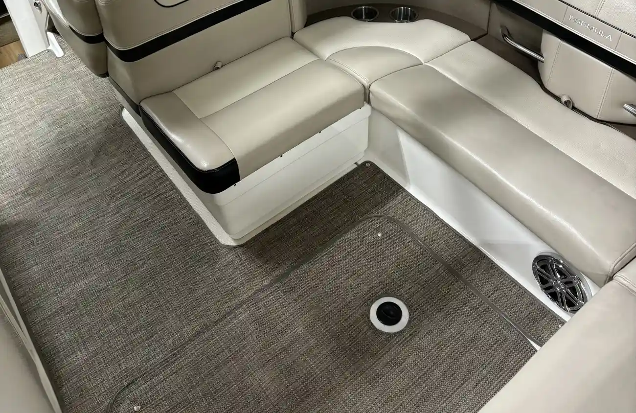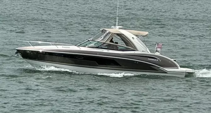 Classic Formula layout with cabin, overnight sleeping for 4, Galley and head compartments. Joystick docking powered by upgraded T-430 HP Mercruisers. The rare mocha metallic hull paint sets this one apart! Generator, air and heat, Raymarine touch screen, GPS/Plotter, ICOM VHF Radio, stereo and much more. Offsite inside storage, Call for appointment.