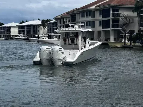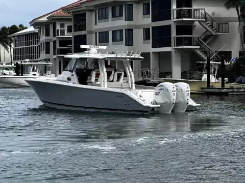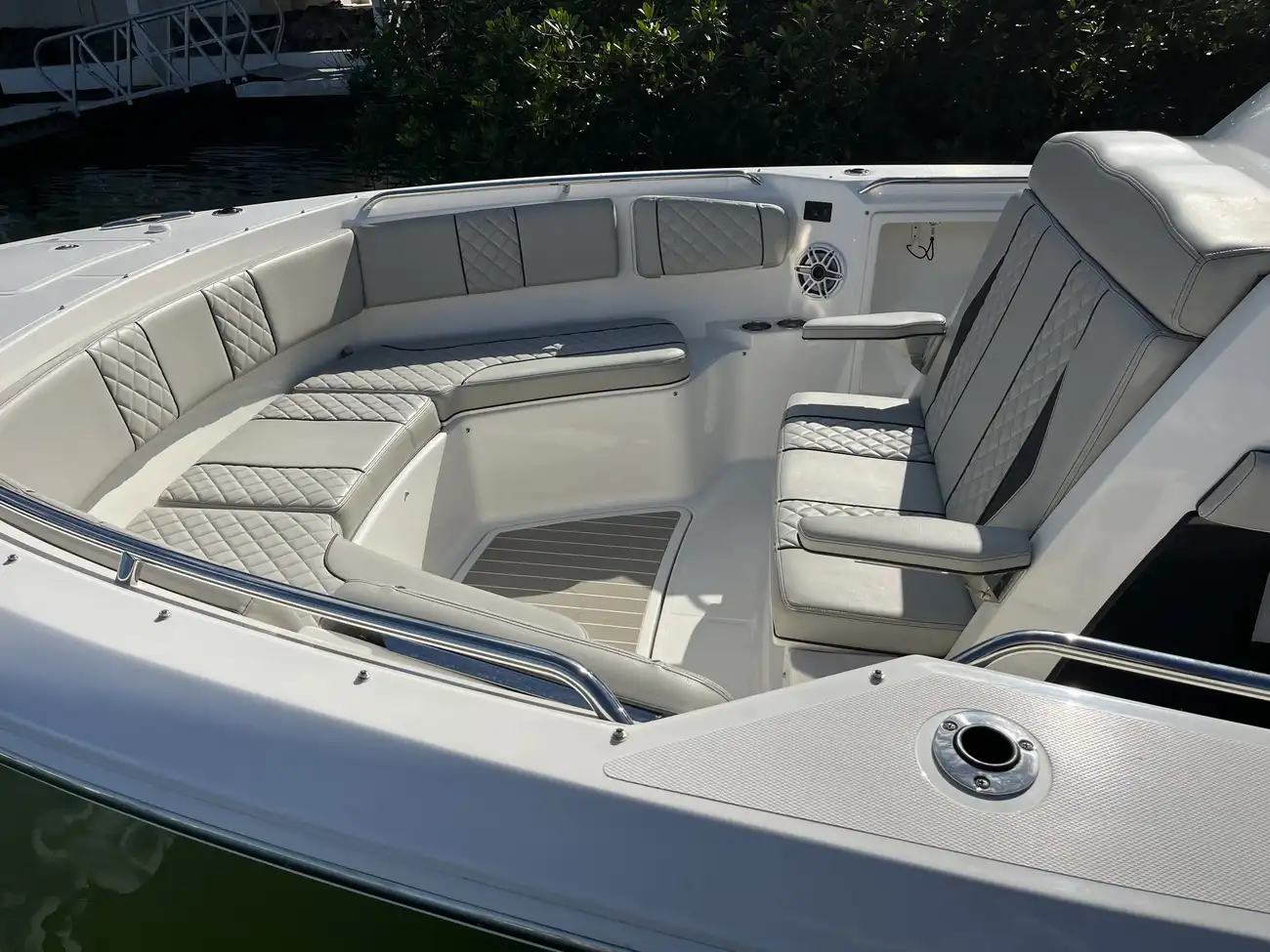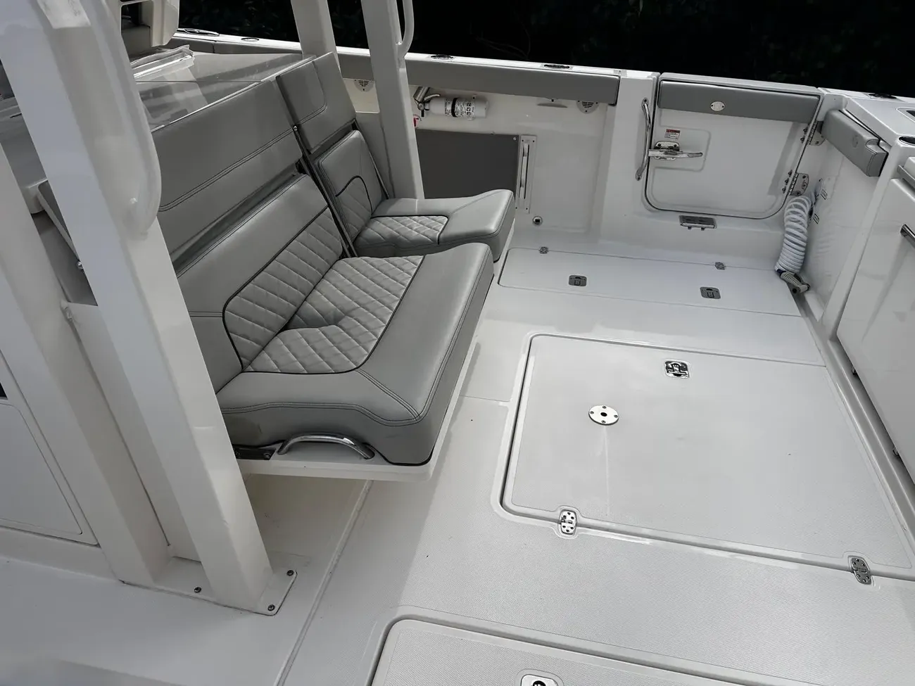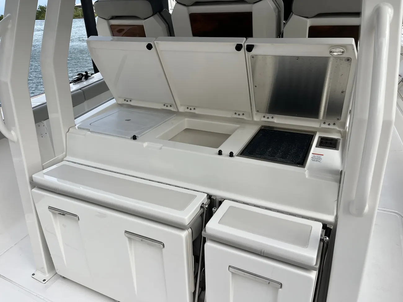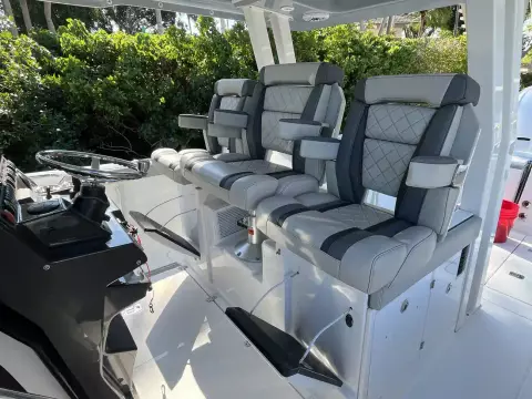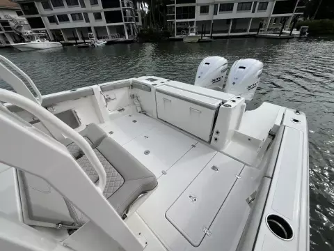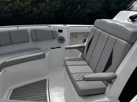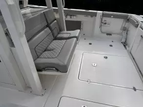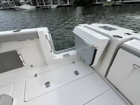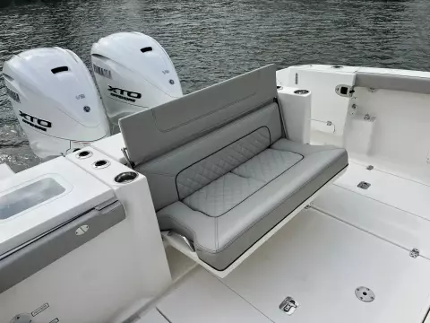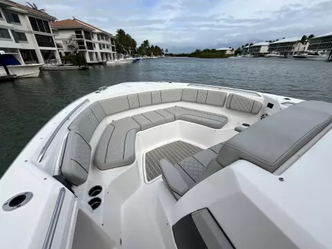 Ergonomically designed helm seating and dash for the ultimate in comfort and control. And the fact that it’s the only center console in the 34' to 35' market to have an enclosed head. Whether you are socializing on deck, driving to your secret fishing spot or taking a moment to yourself, you’ll appreciate the thoughtful craftsmanship instilled in every inch. Plus, forward-facing lounge seats in the bow, side coaming storage and built-in rod holders add to the ways you and your family can enjoy this boat.