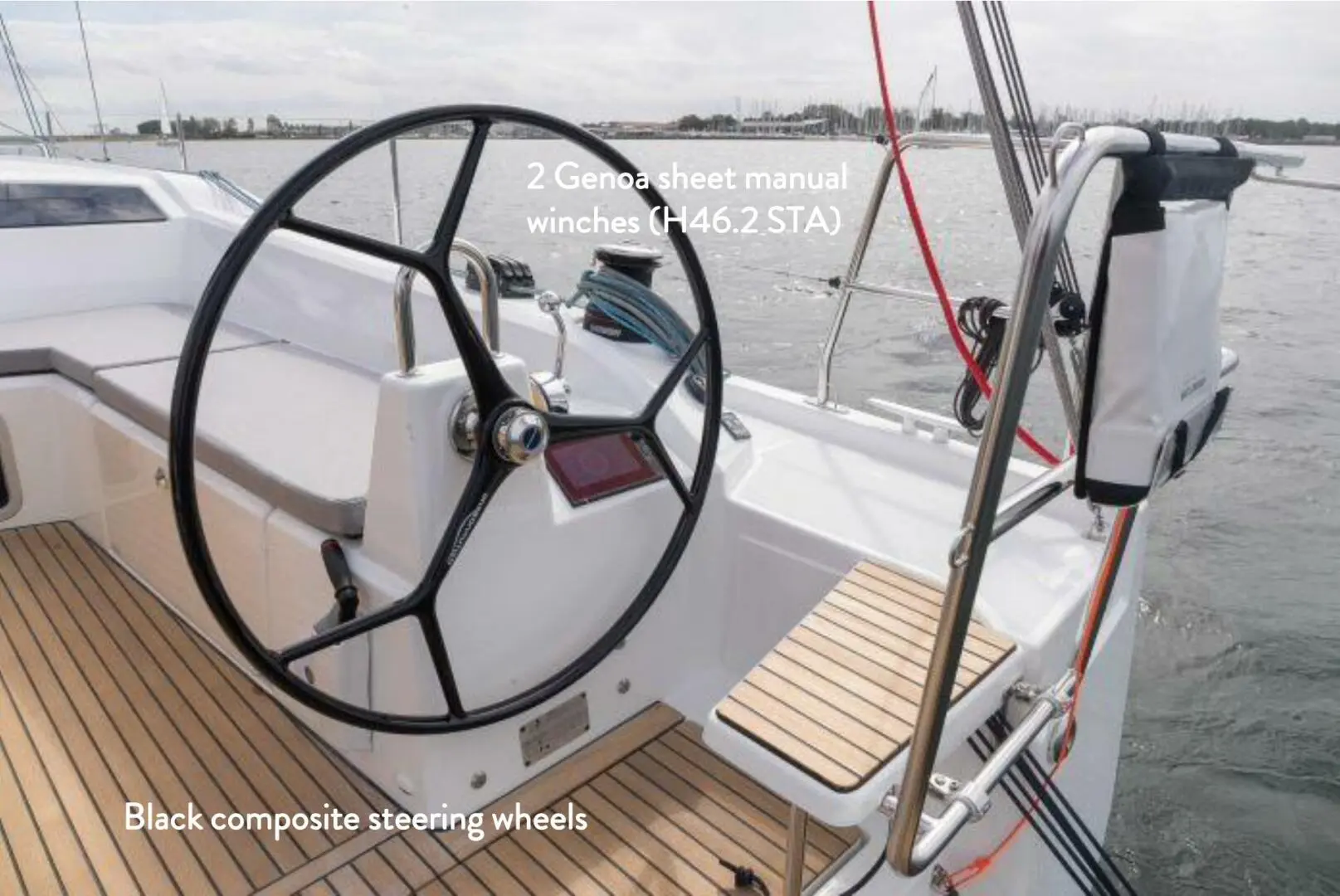 • Additional jammers: 1 triple jammer on coaming to port and starboard for mainsail sheet, genoa sheet, adjustment of genoa sheet traveller