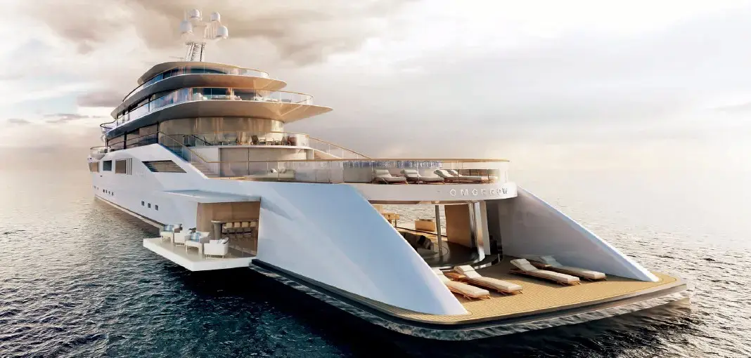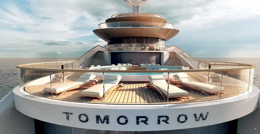 ACURY and Pride Mega Yachts presents Tomorrow as its concept 100m-plus mega yacht, built for the future and developed to meet the growing demand for this sought-after new class of vessel. Designed by a team of dedicated international experts, the spacious, six-deck Tomorrow allows 18-26 guests to be received in great style and comfort to cruise the oceans while served by approximately 30 crew members.